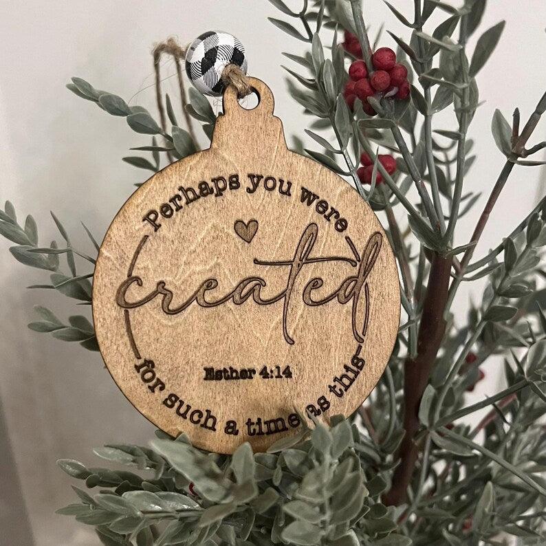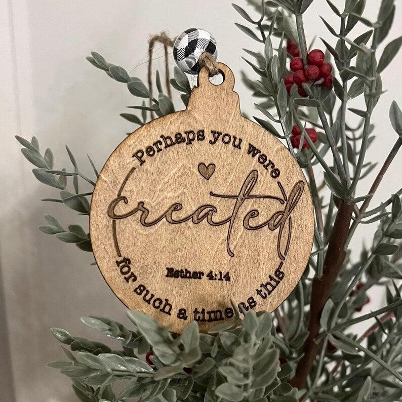 “Perhaps You Were Created for Such a Time as This” Christmas Ornament- PERFECT for a religious gift, handmade ornament with Bible verse, secret Santa gift, pastor gift or ornaments for family members. it is a great reminder to love others the way Jesus did!