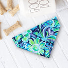 Blue & Purple Floral Dog Bandana - PERFECT for a preppy summer pet bandana, dog gift, dog accessories or dog clothing. Wow everyone on your next dog walk with this preppy dog bandana! *Easily slips on to a dog collar for a secure fit!