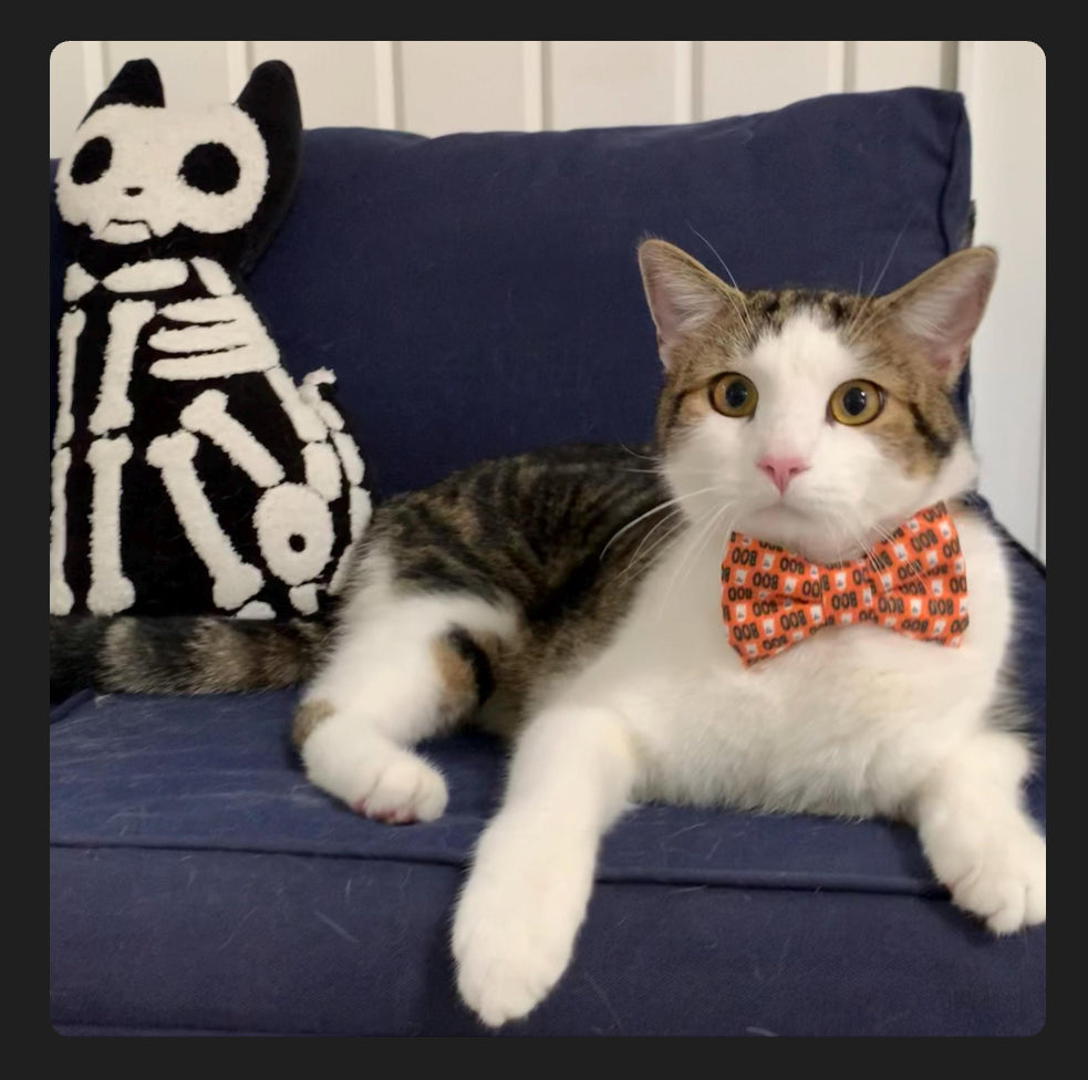 Shop the best Halloween Dog Bow Ties and Cat Bow Ties to dress your pets in spooky style this fall. Our handmade Halloween pet bow ties slide easily onto any dog collar or cat collar, making them the perfect Halloween dog costume accessory for parties, trick-or-treating, haunted house photos, and fall celebrations. From ghost dog bow ties to pumpkin pet bow ties and festive orange and black Halloween dog accessories, these seasonal styles are designed to make your furry friend stand out. Ideal for dog lover gifts, cat lover gifts, new puppy gifts, and Halloween pet costumes. Proudly handmade in the USA by a woman-owned, family-run brand, our premium dog bow ties and cat bow ties combine durability, comfort, and holiday spirit for unforgettable spooky season style.