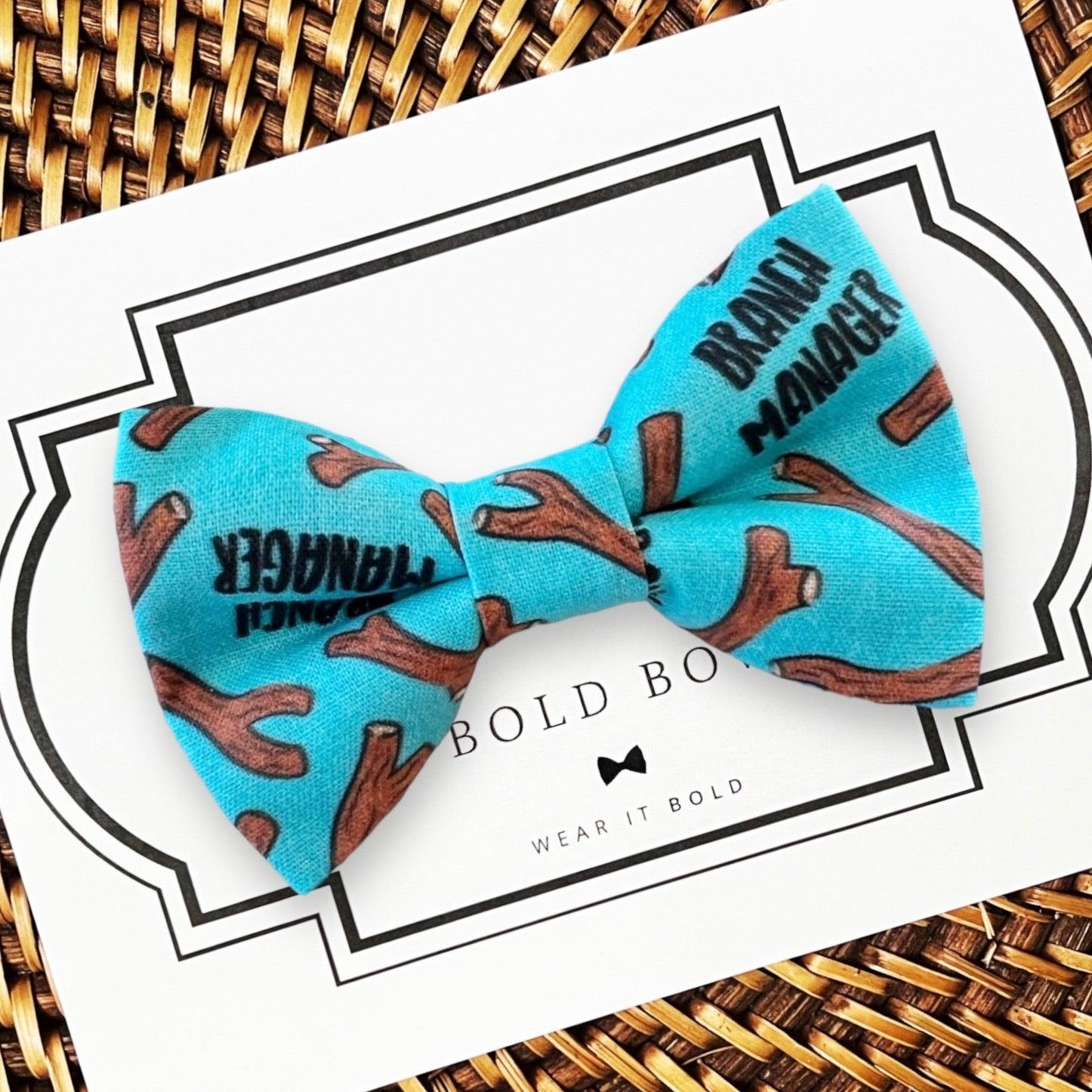 This Branch Manager Dog Bow Tie is perfect for a dog gift, dog lover gift, dog birthday gift, or for any special occasion. This bow tie slips easily on a dog collar to help bring a little fun to the everyday!