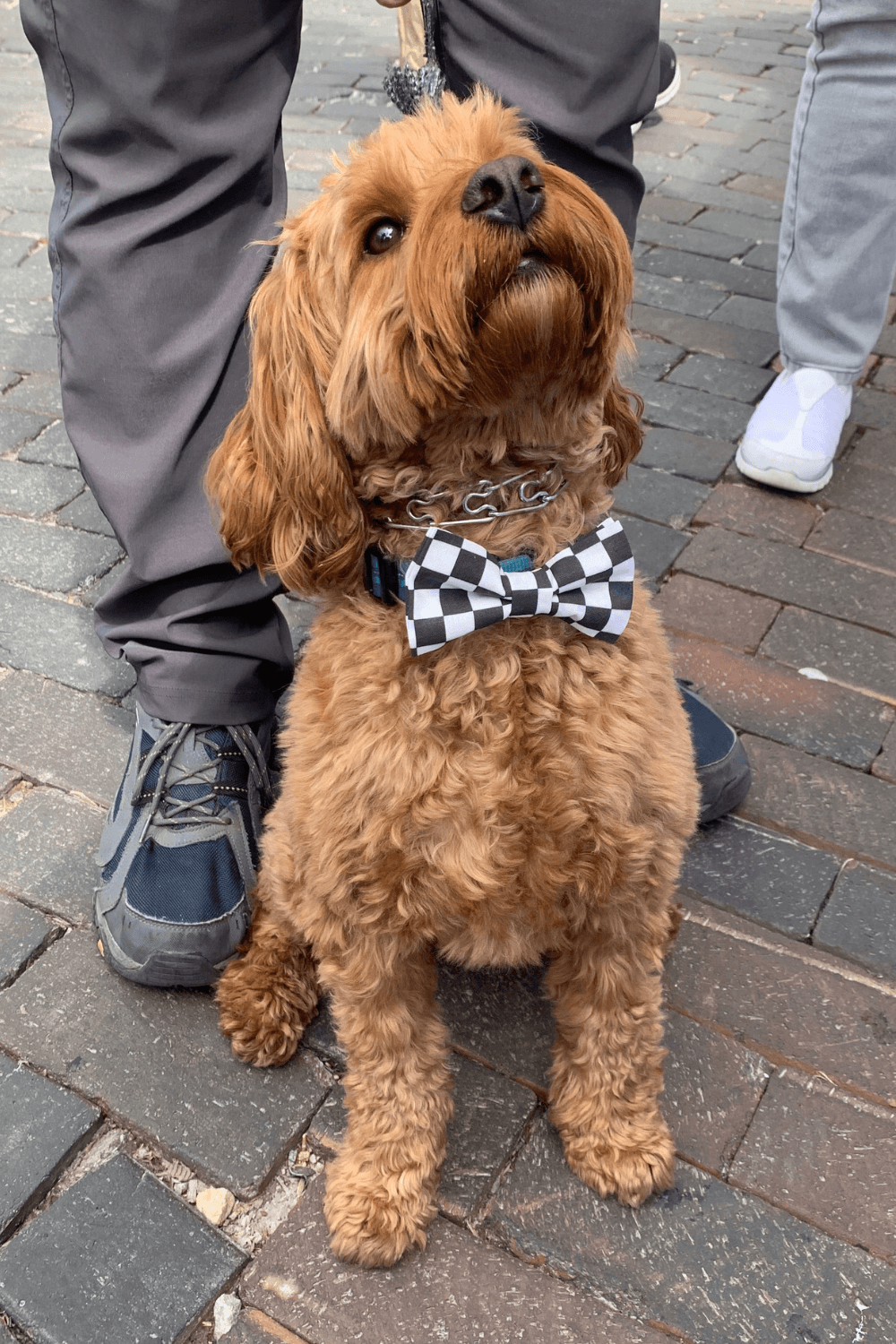 Checkered Flag dog bow tie or cat bow tie slips easily onto a dog collar or cat collar with elastic to help them look their best! It is the perfect dog lover gift, dog bowtie, grand prix bow tie for dogs, or to wear during the Indianapolis 500 race!