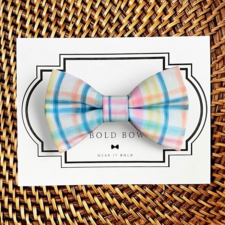 Easter Plaid Dog Bow Tie or Cat Bow Tie for Dog Collar and Cat Collar- Pink, Blue, Yellow Pastel