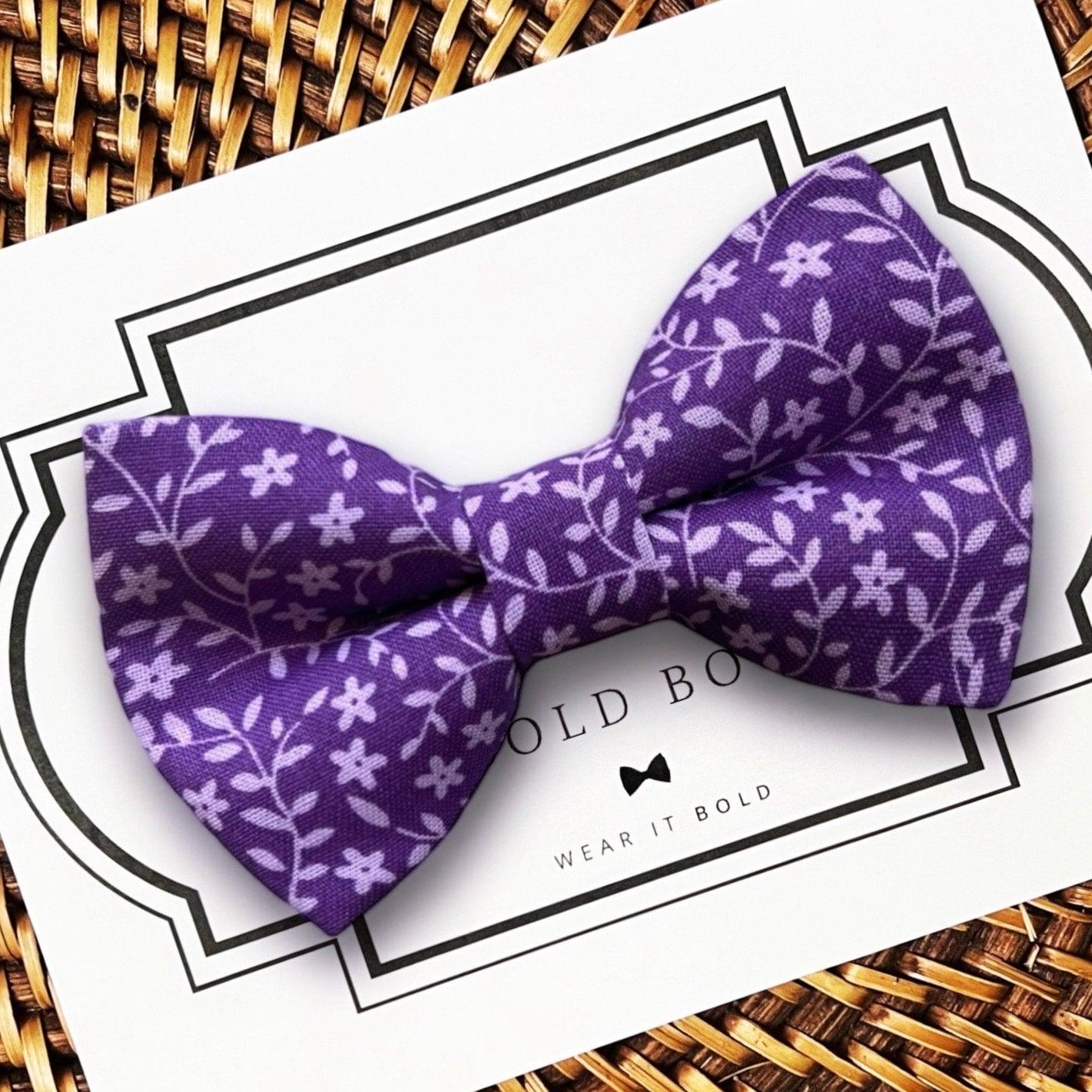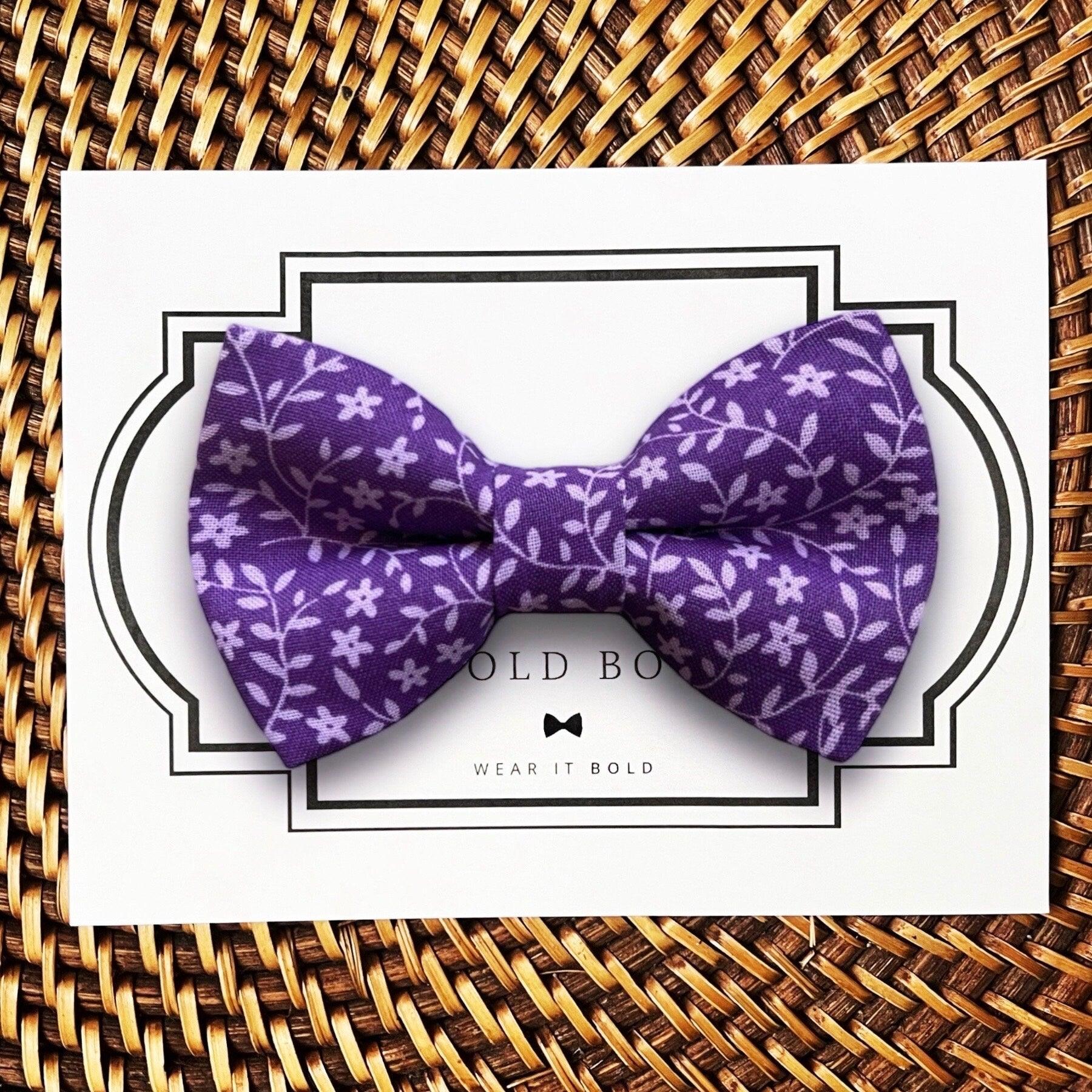 Floral dark purple dog bow tie or cat bow tie that slips easily onto a dog collar or cat collar. This bowtie is PERFECT for a amethyst dog wedding bow tie, plum bowtie for dogs, grape dog accessories, dog gift or dog lover gift!