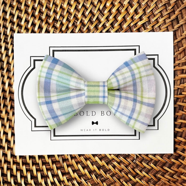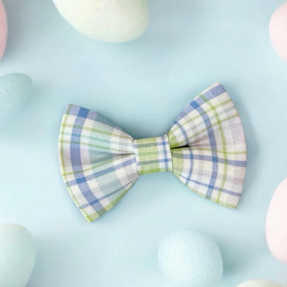 Plaid Easter Dog Bow Tie or Cat Bow Tie for Dog Collar and Cat Collar- Purple & Green