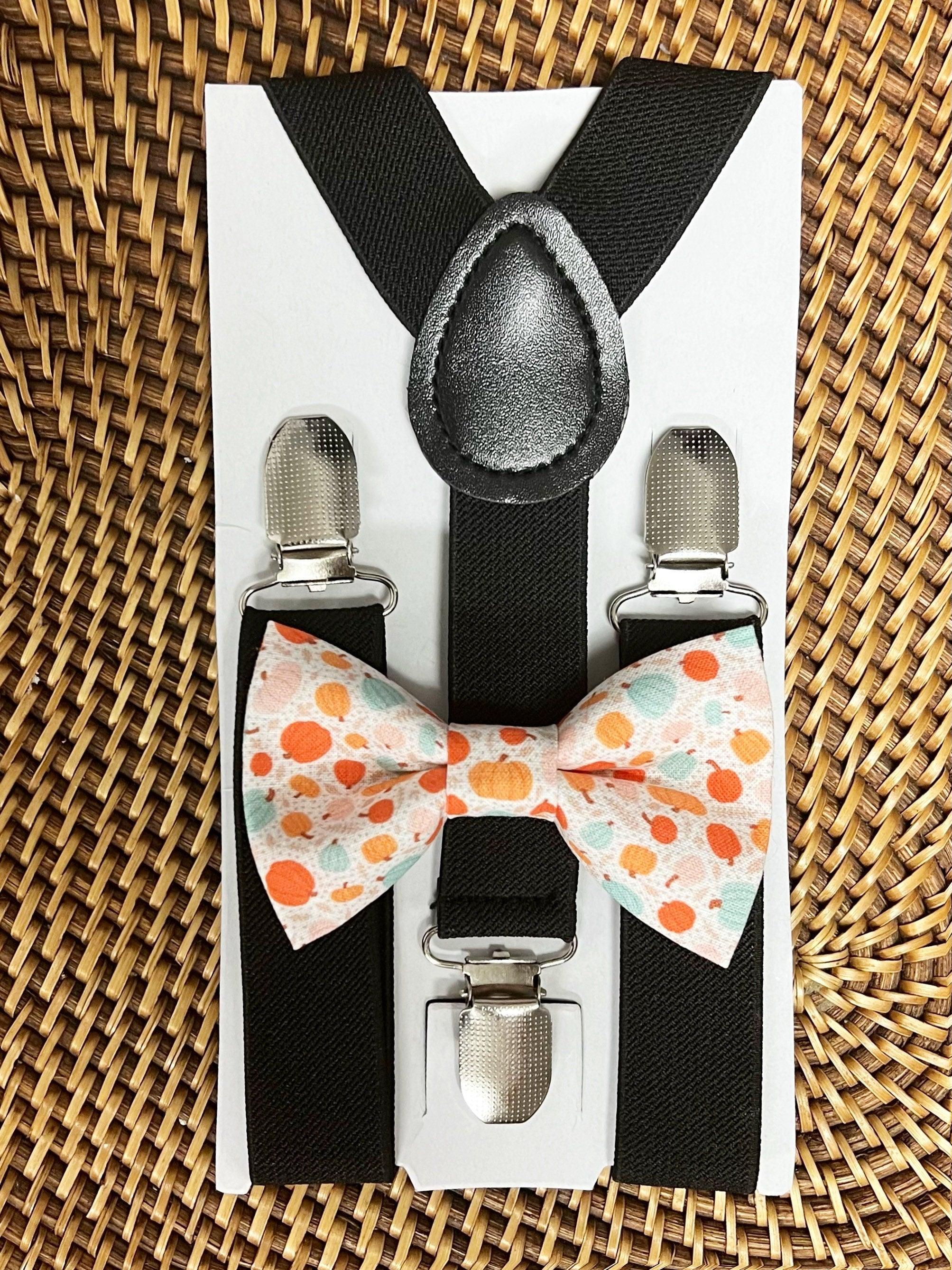 Pumpkin Bow Tie and Suspenders- Perfect for a Thanksgiving Outfit, Halloween Party, Mens Bow Tie, Toddler Bow Tie, All Sizes