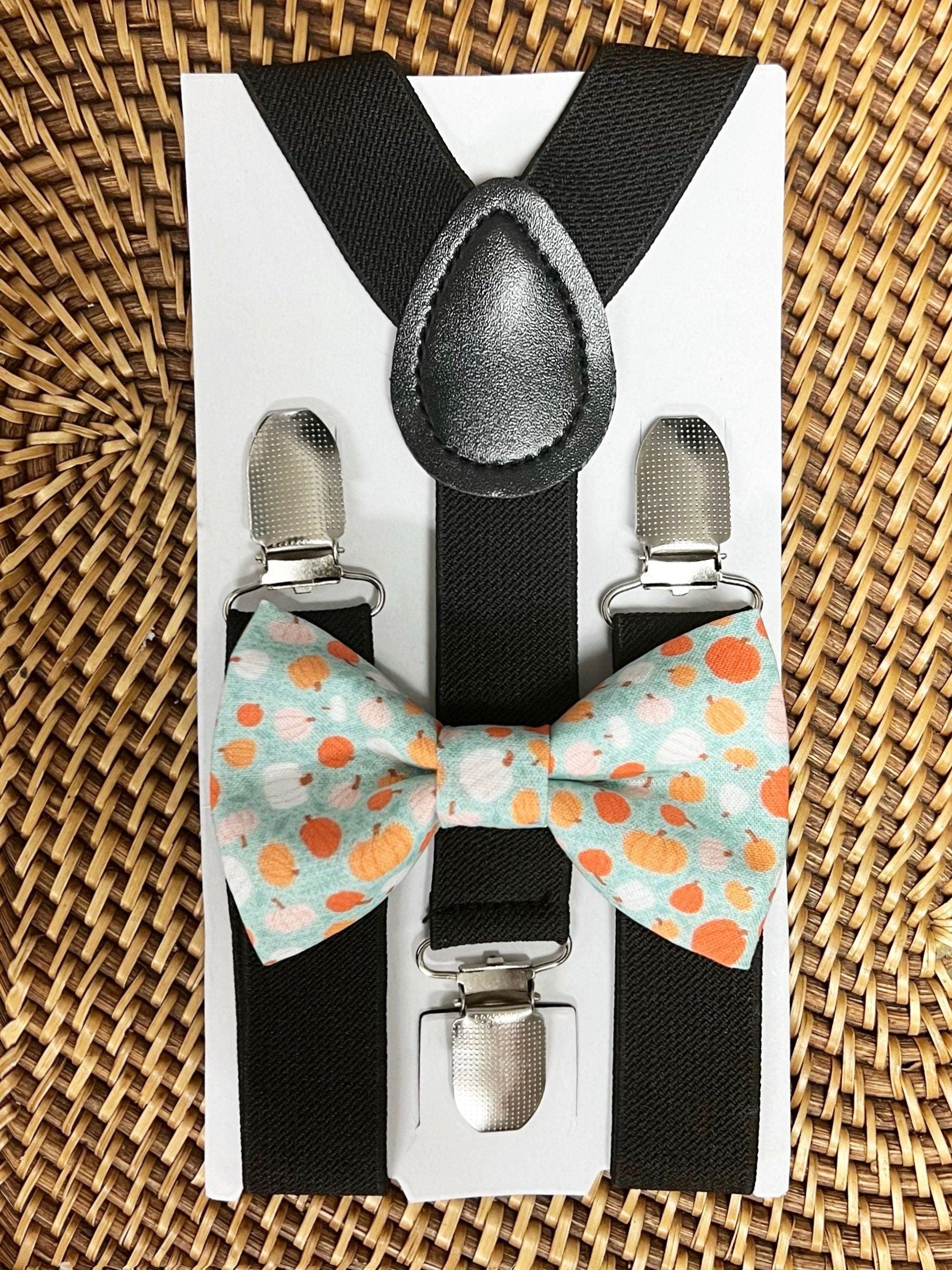 Pumpkin Bow Tie and Suspenders- Perfect for a Thanksgiving Outfit, Halloween Party, Mens Bow Tie, Toddler Bow Tie, All Sizes