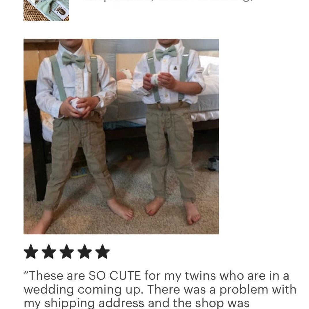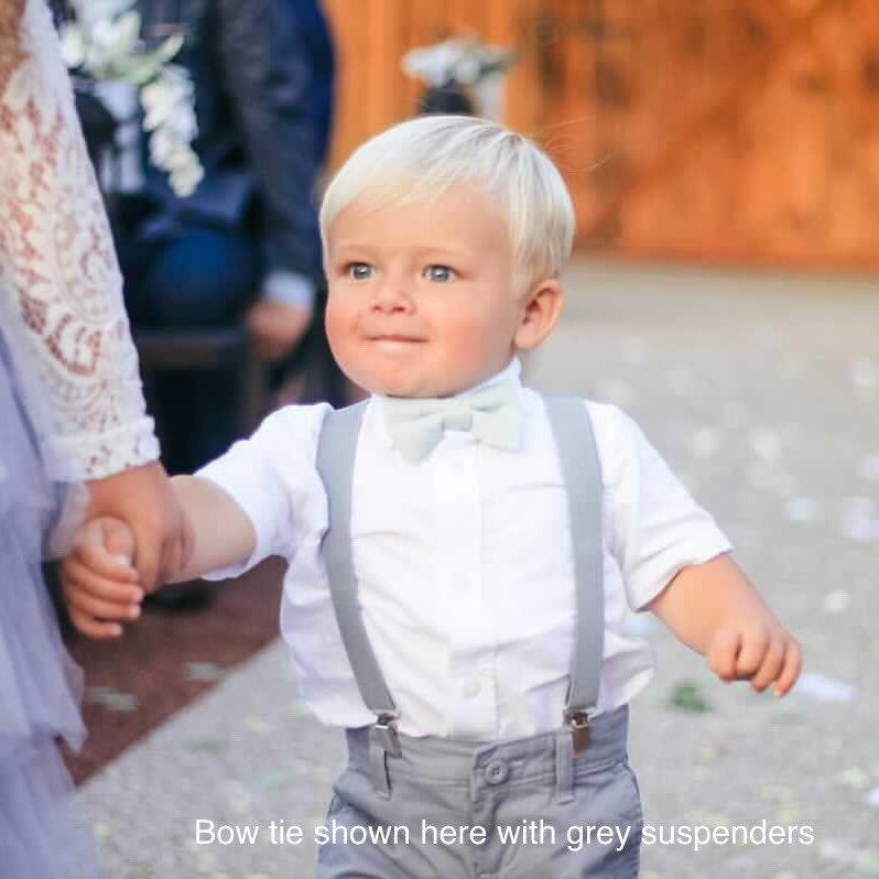 Your special someone will look so handsome when they show up wearing a bow tie and suspenders! These bow ties and suspenders are PERFECT for groomsmen gifts, groomsmen, rustic wedding, wedding accessories, bowtie, beach wedding, fall wedding, boho wedding, wedding party gifts, backyard wedding, ring bearer outfit, birthday celebration or any other special occasion! Each set includes a suspender and bow tie. Please reach out to us if you have any questions!