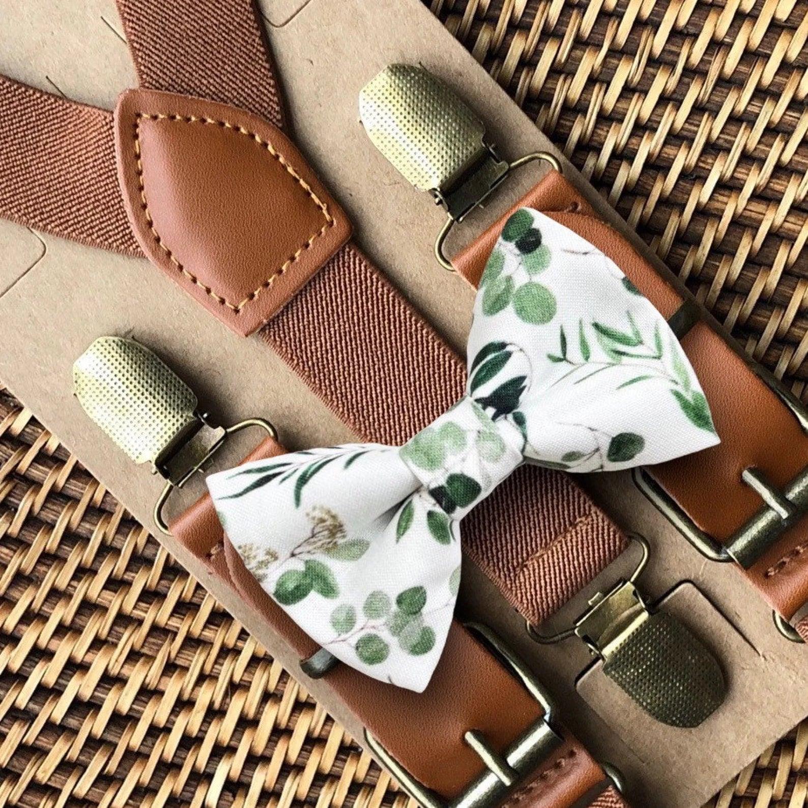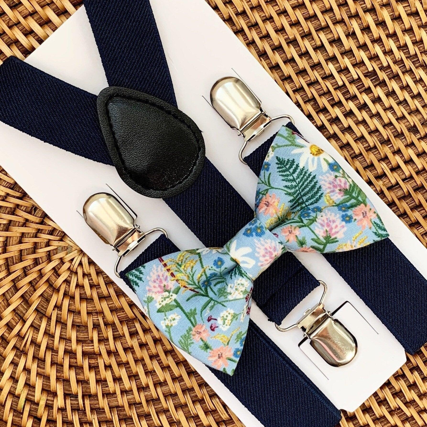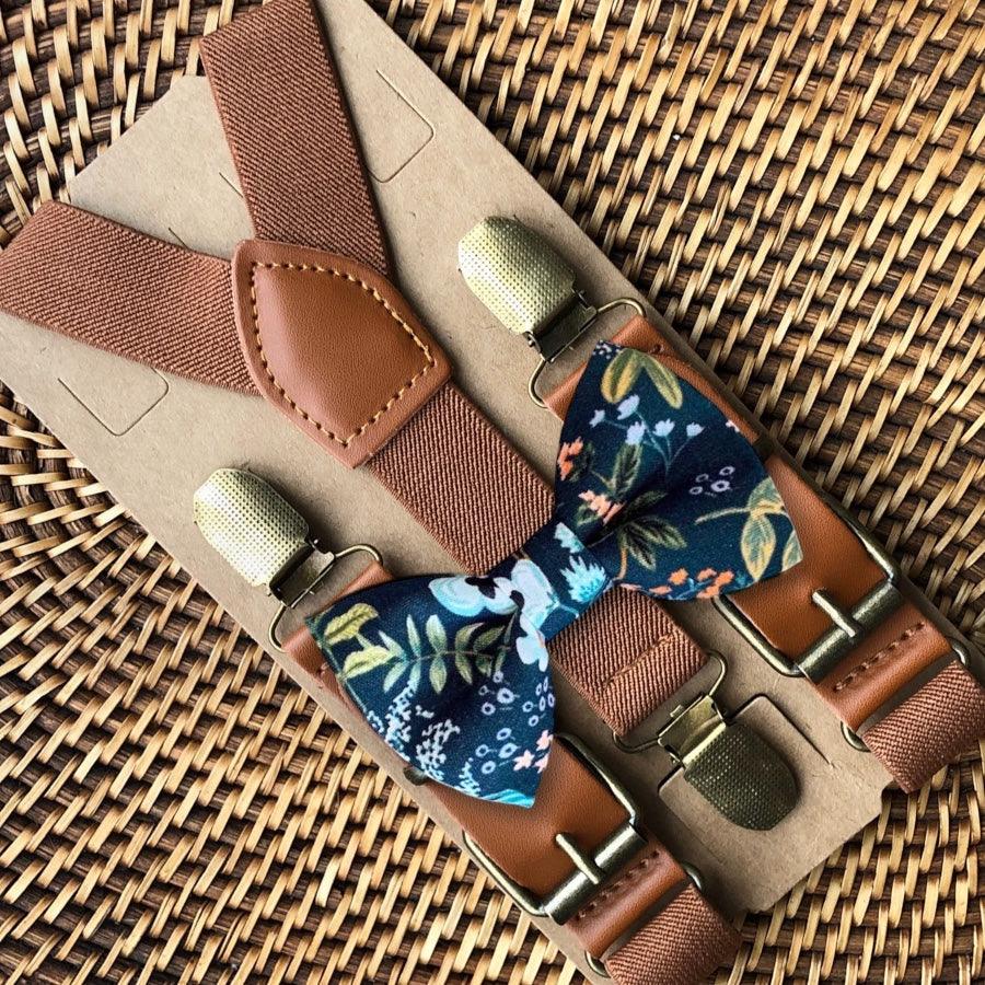 Floral bow ties and suspenders for your next event- Each bow tie and suspender set is PERFECT for groomsmen gifts, groomsmen, rustic wedding, wedding accessories, bowtie, beach wedding, fall wedding, boho wedding, wedding party gifts, backyard wedding, ring bearer outfit, women's suspenders, leather suspenders, birthday celebration or any other special occasion!