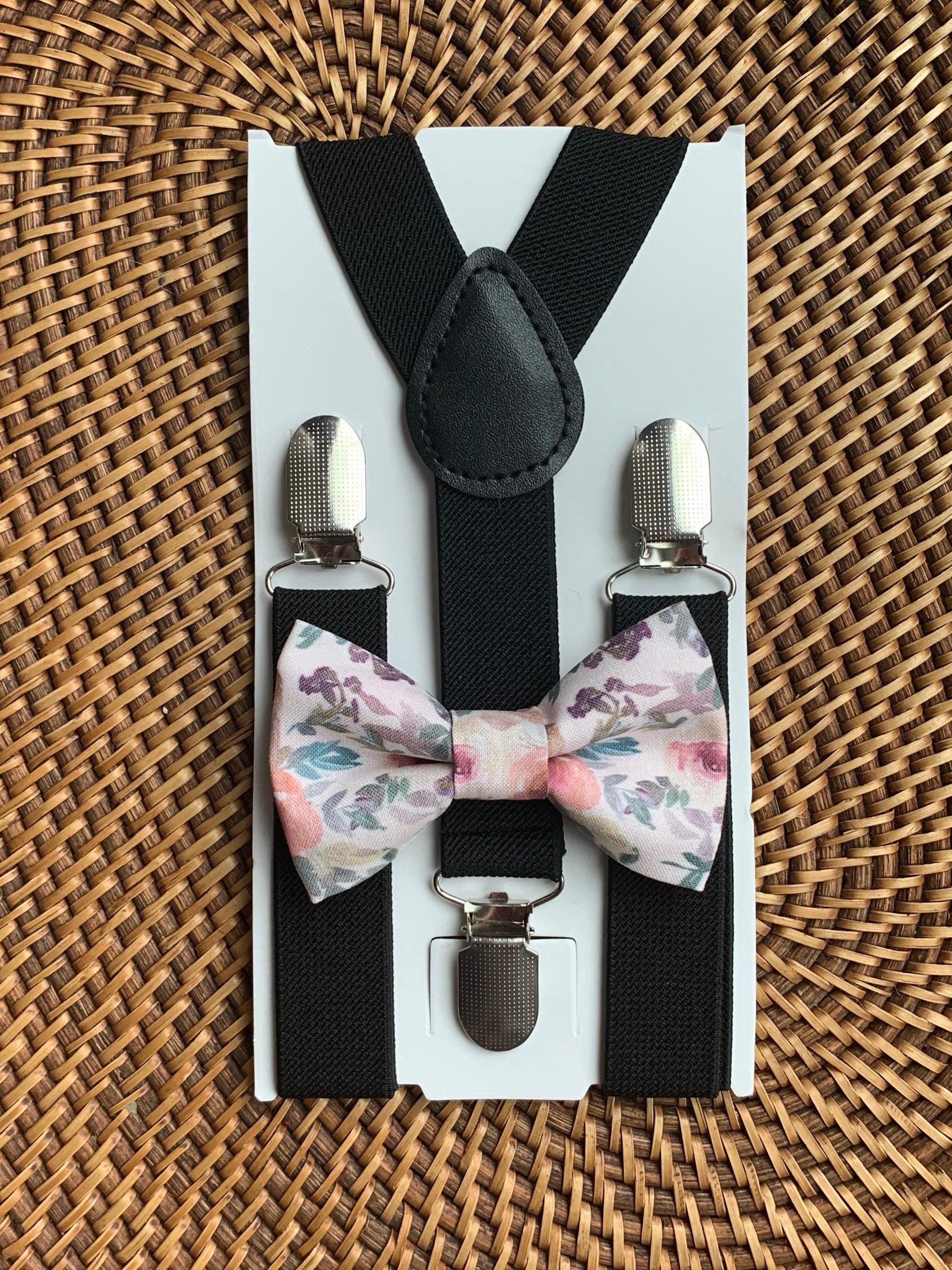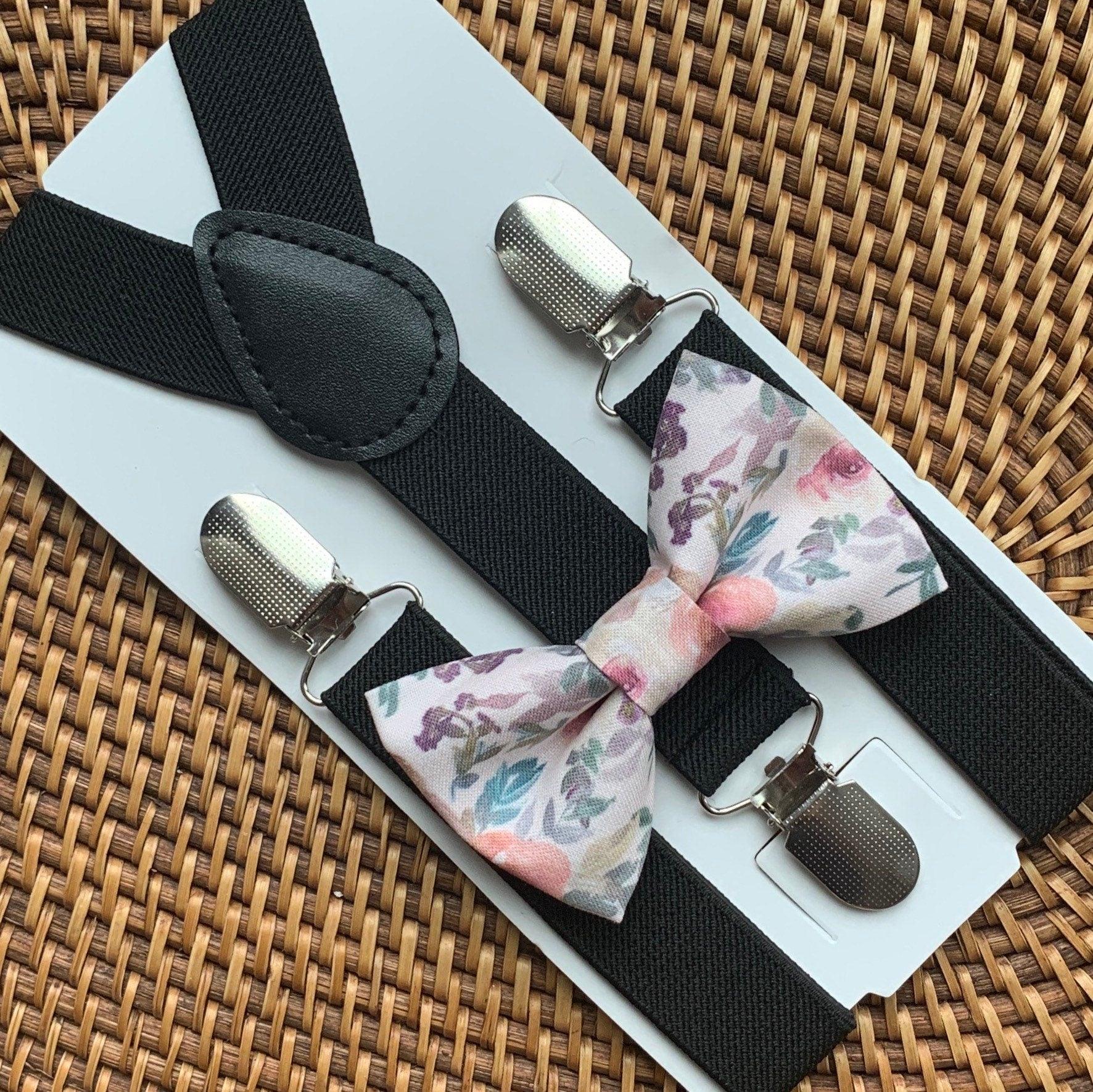 Blush Pink Floral Bow Tie & Black Suspenders- Your special guy will look so handsome when he shows up wearing this charming pink floral bow tie and black suspenders set! This bow tie is a great choice for family photos, weddings, ring bearer outfit, birthday celebration or any other special occasion.