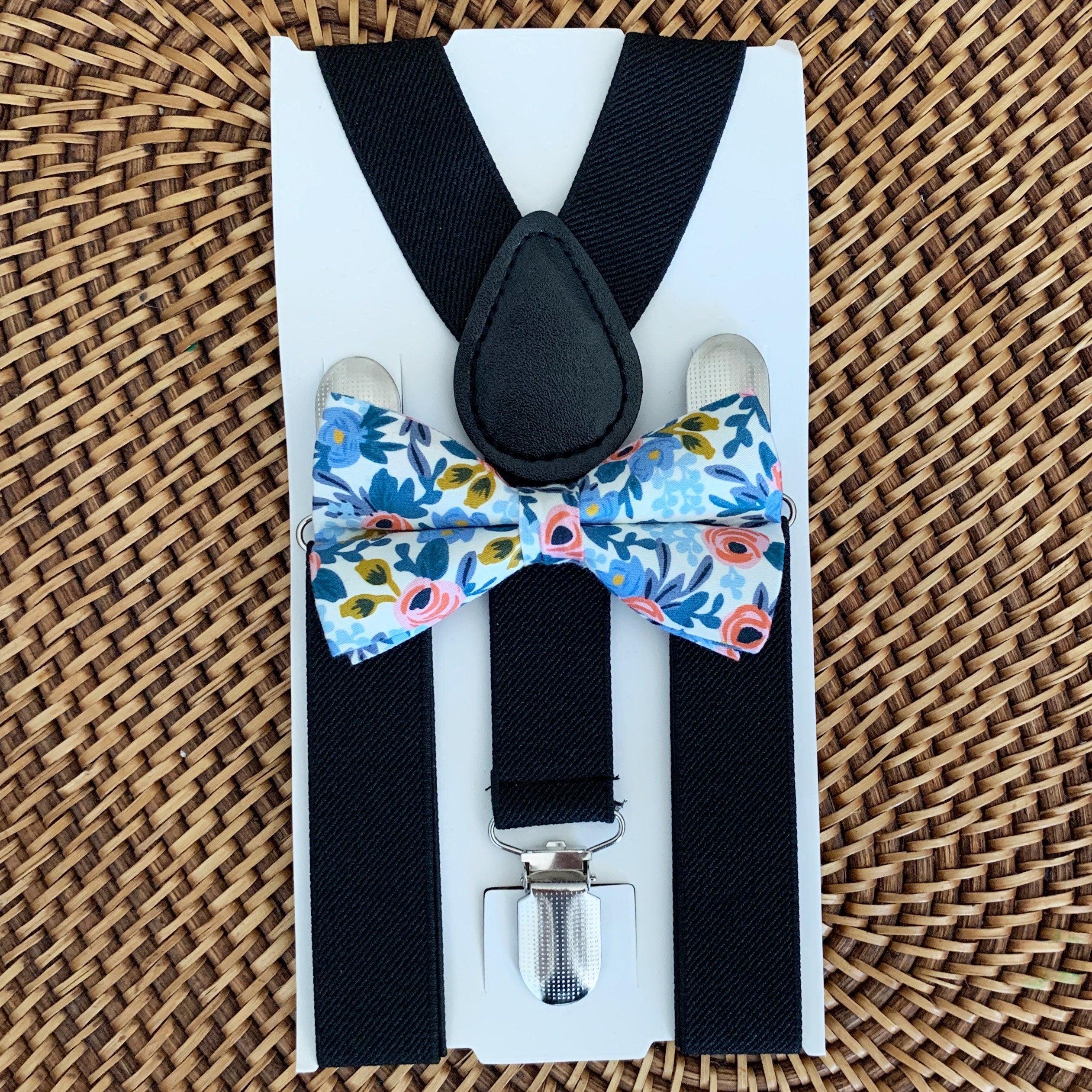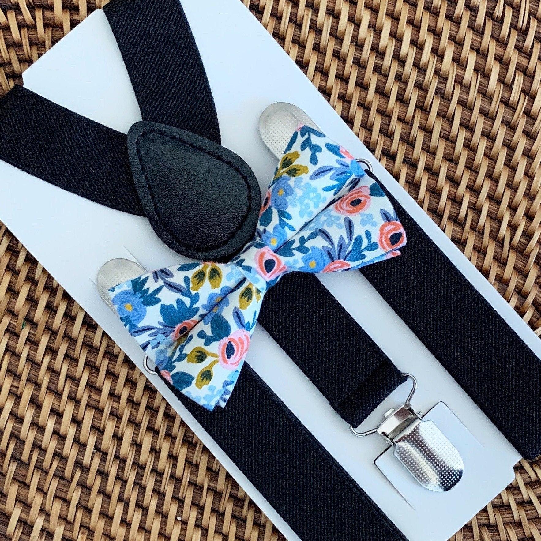 Your special guy will look so handsome when he shows up wearing this charming floral bow tie and black suspenders! This set is a great choice for family photos, wedding, ring bearer outfit, birthday celebration or any other special occasion.