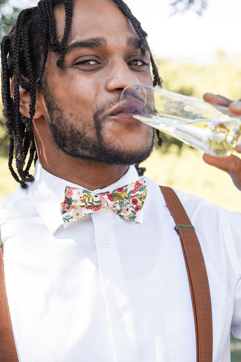 Rifle Paper Co Floral Bow Tie & Cognac Brown Suspenders