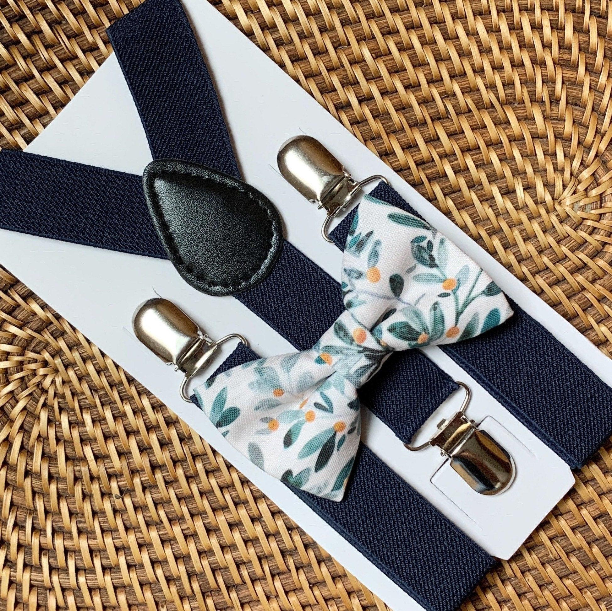 Eucalyptus and Gold Floral Bow Tie & Navy Suspenders Set