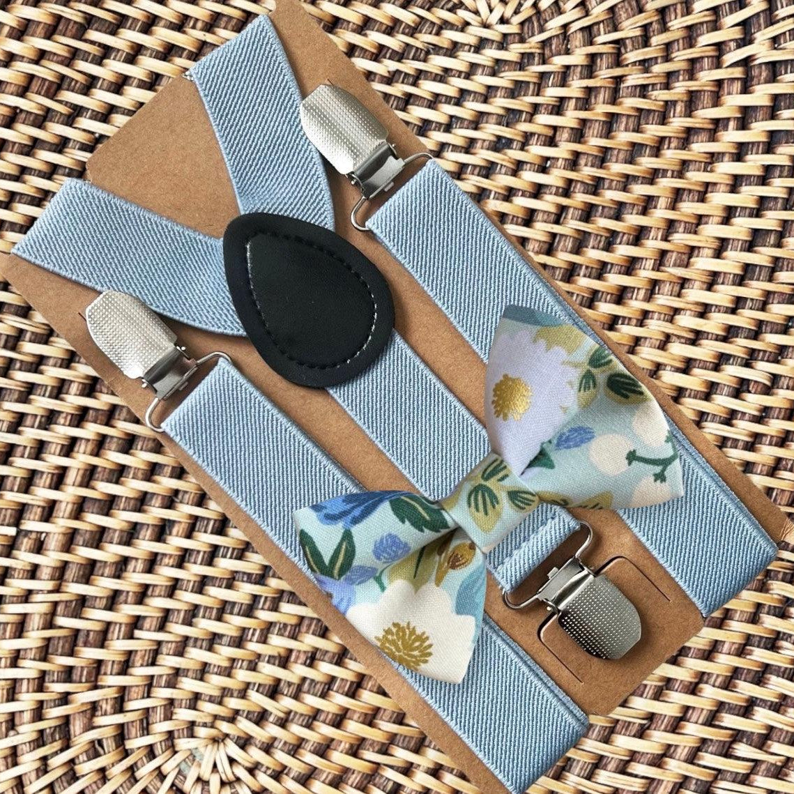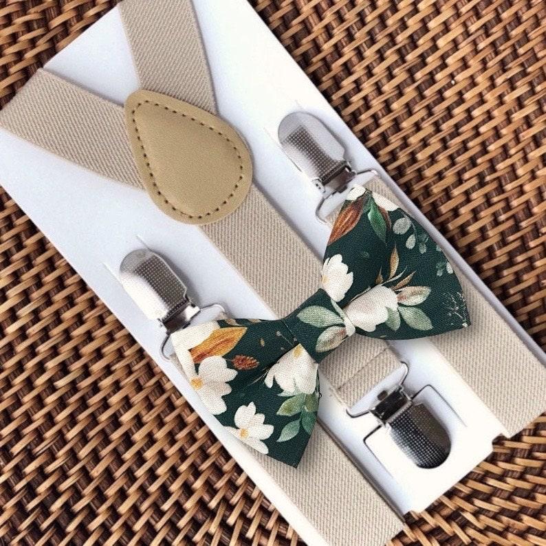 Floral bow ties and suspenders for your next event- Each bow tie and suspender set is PERFECT for groomsmen gifts, groomsmen, rustic wedding, wedding accessories, bowtie, beach wedding, fall wedding, boho wedding, wedding party gifts, backyard wedding, ring bearer outfit, women's suspenders, leather suspenders, birthday celebration or any other special occasion!