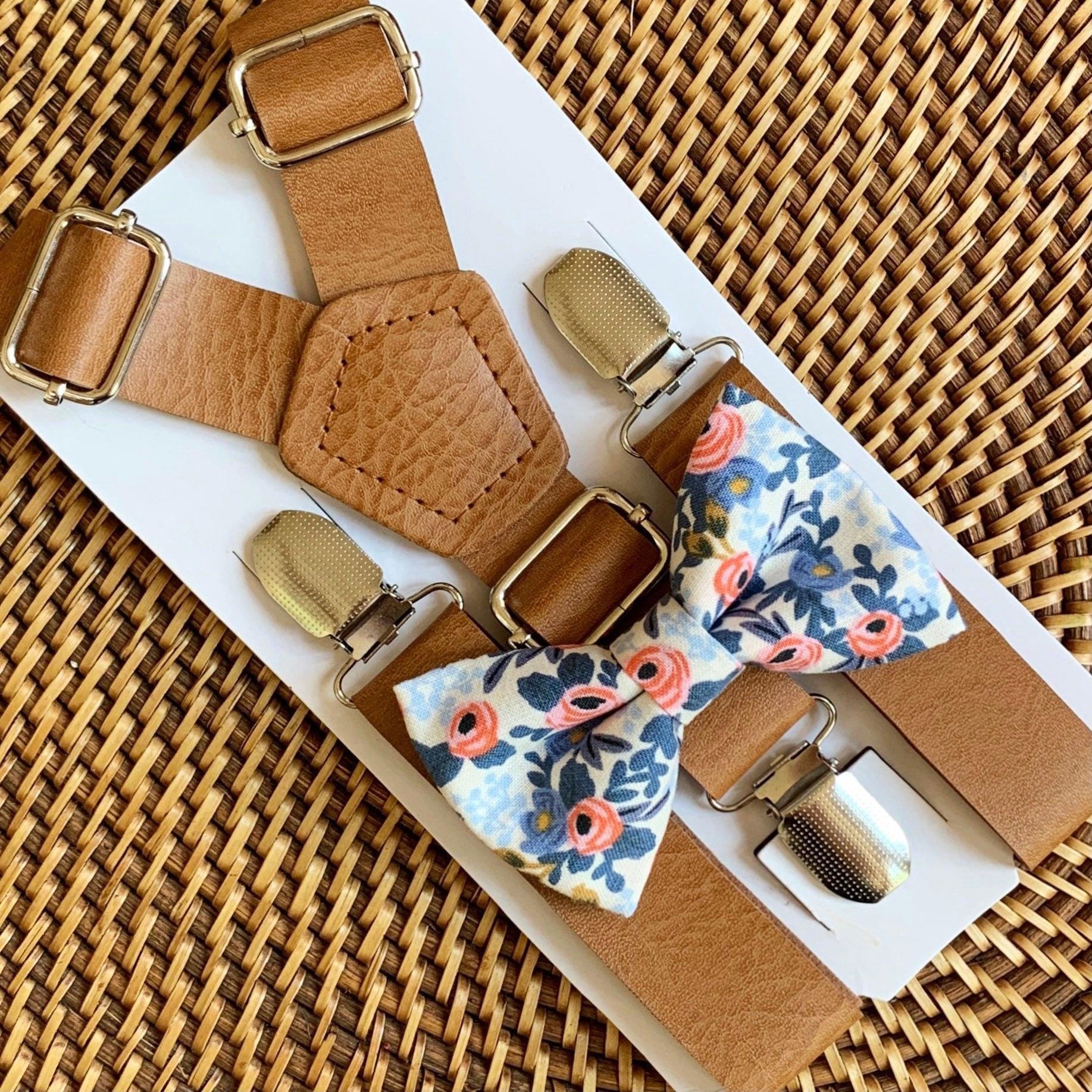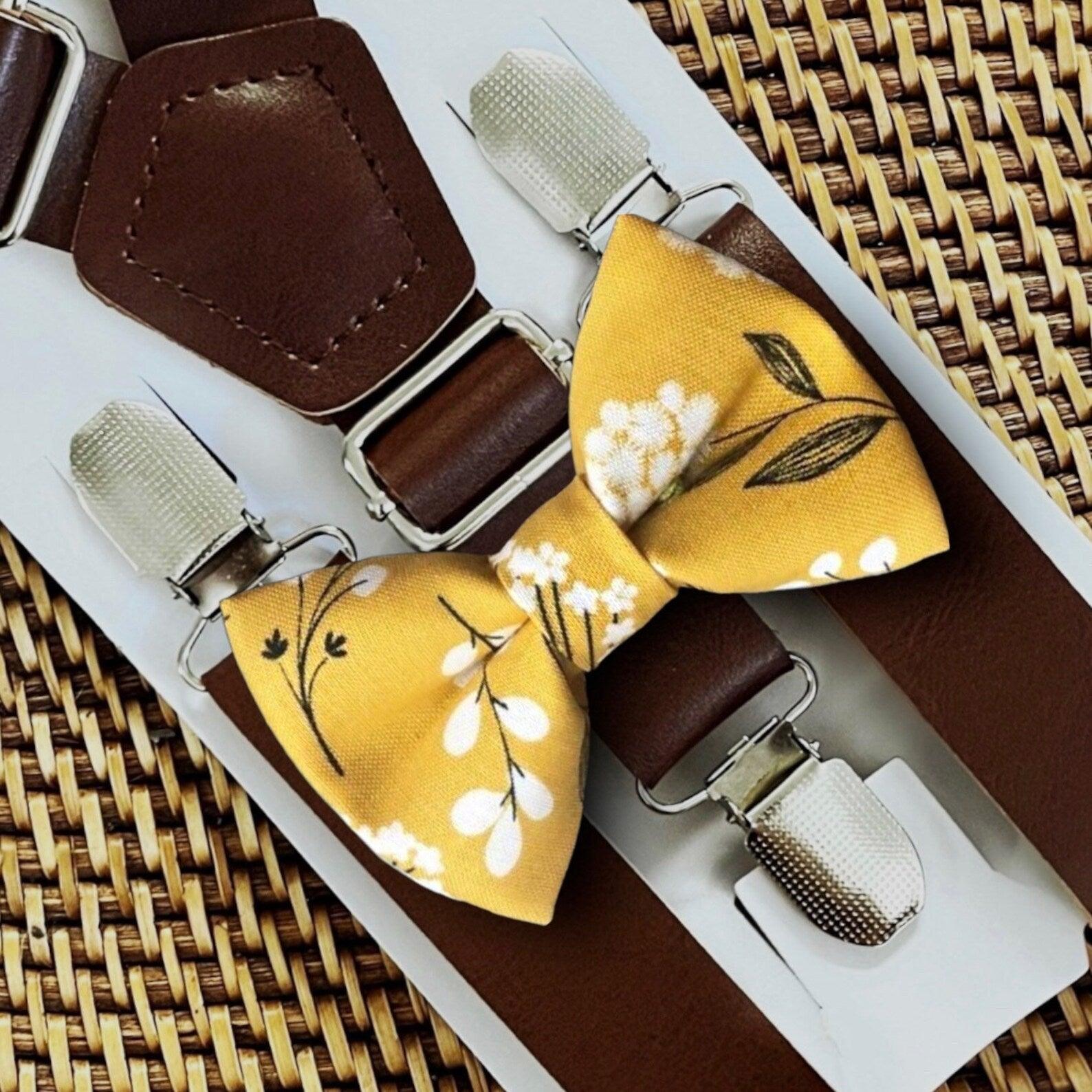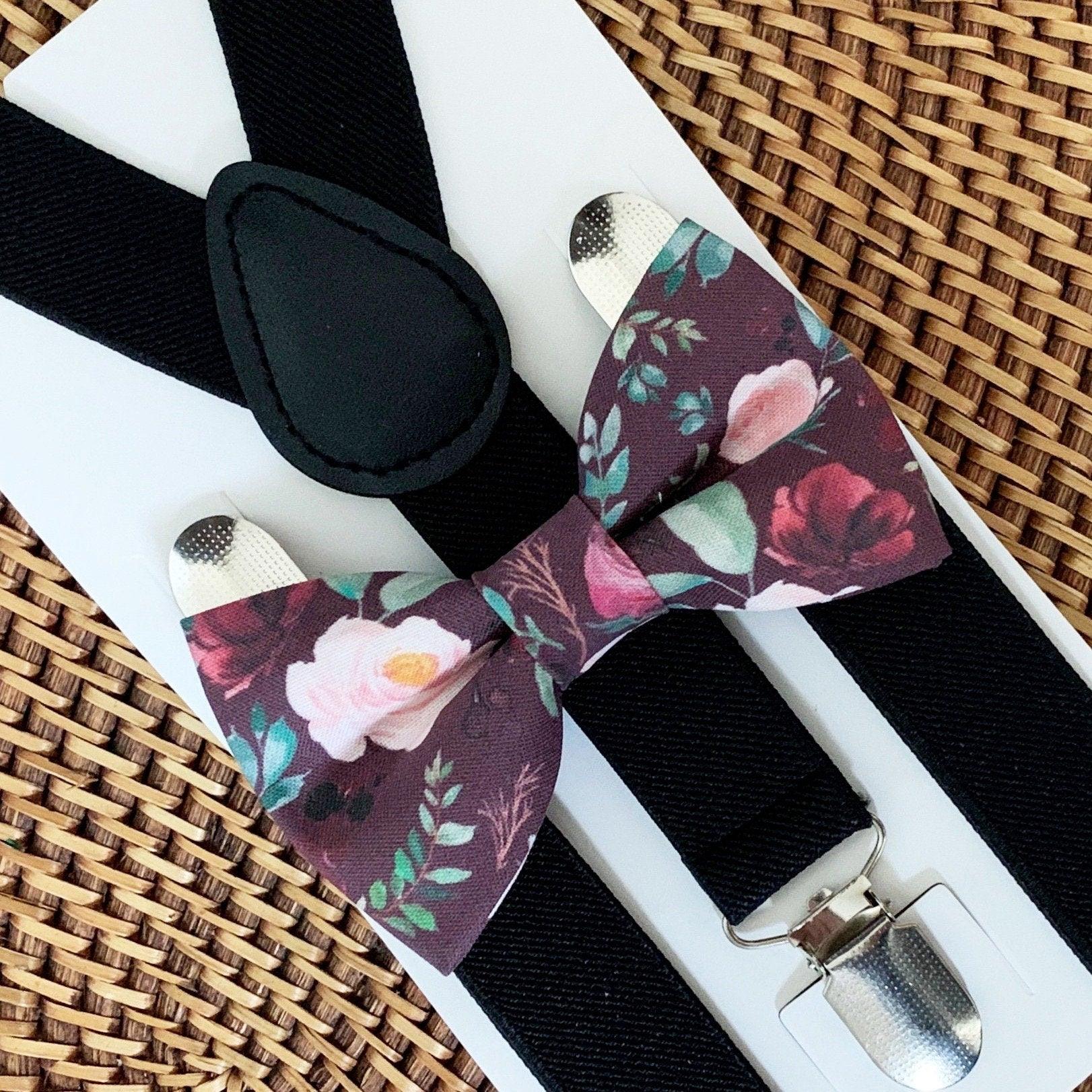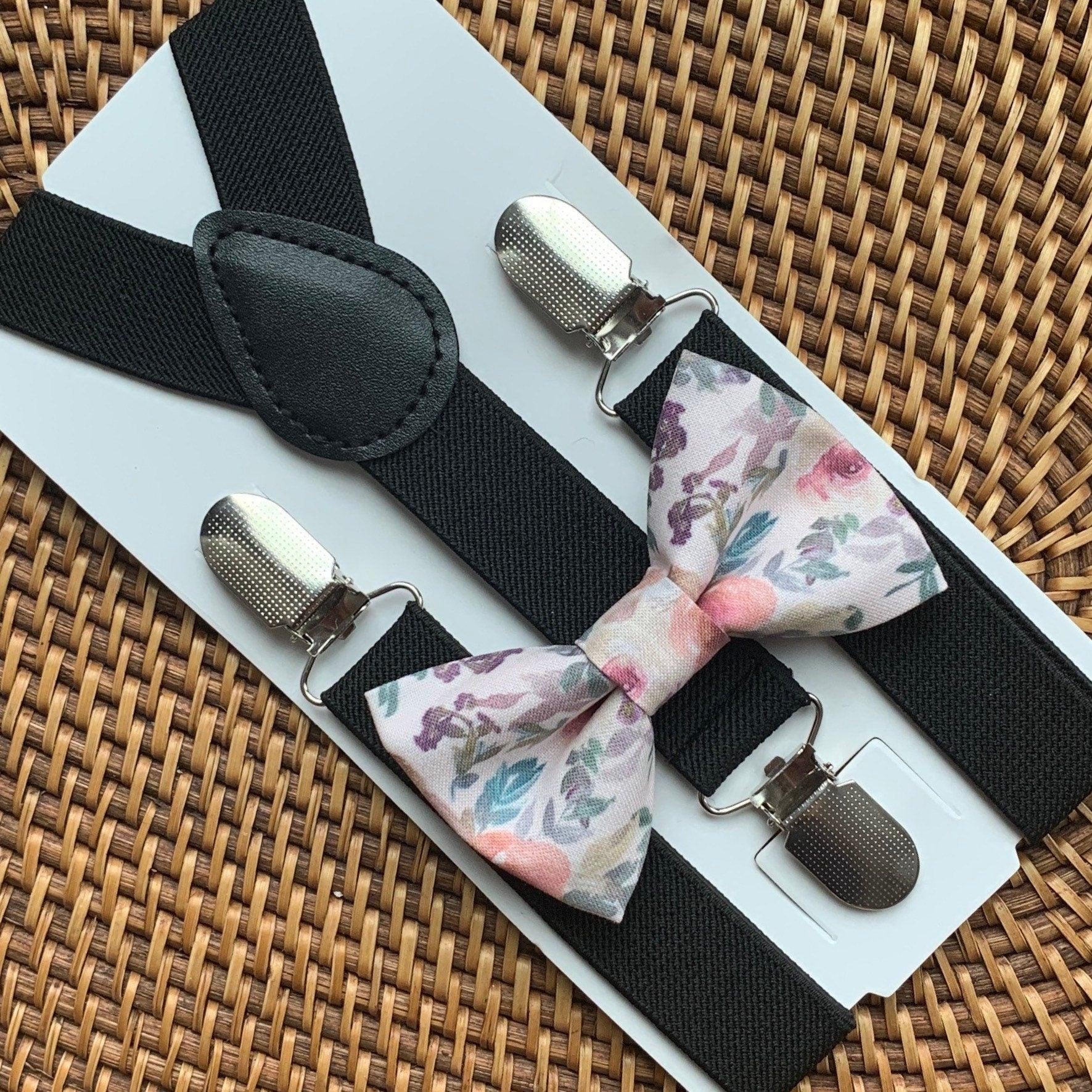 Floral bow ties and suspenders for your next event- Each bow tie and suspender set is PERFECT for groomsmen gifts, groomsmen, rustic wedding, wedding accessories, bowtie, beach wedding, fall wedding, boho wedding, wedding party gifts, backyard wedding, ring bearer outfit, women's suspenders, leather suspenders, birthday celebration or any other special occasion!