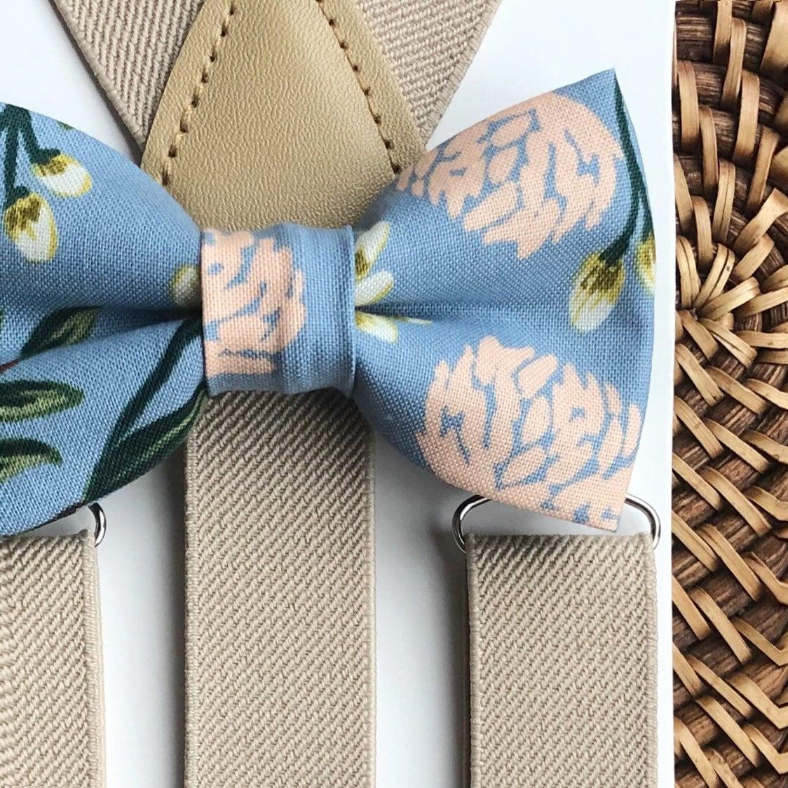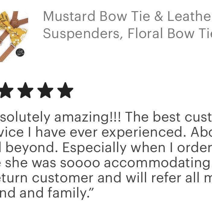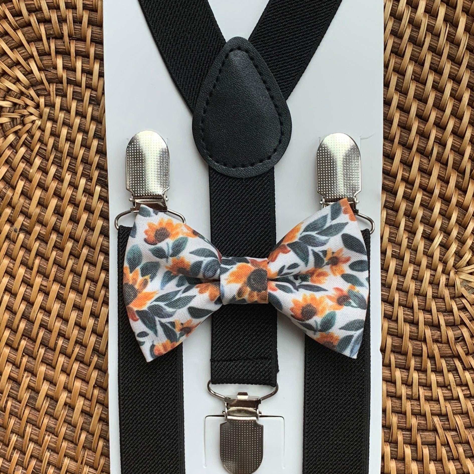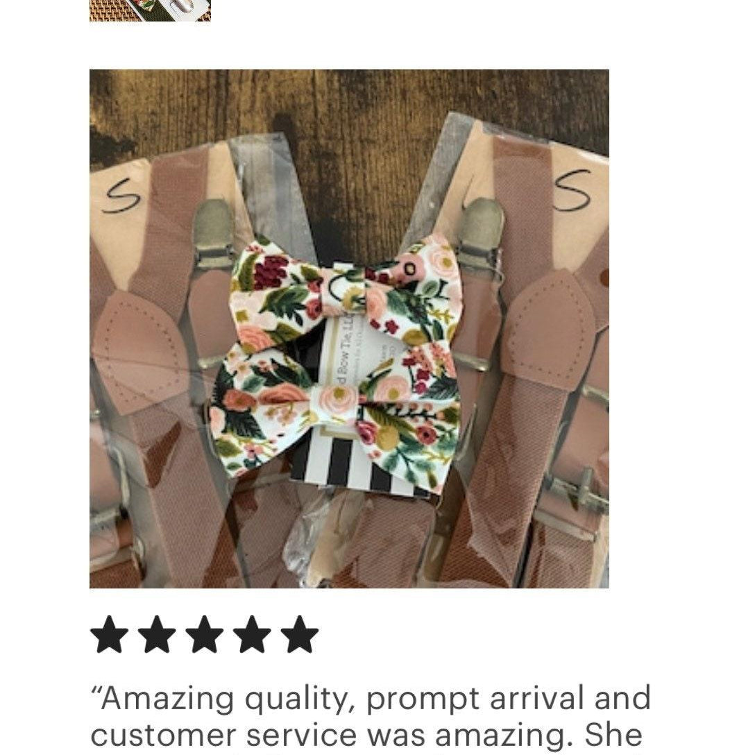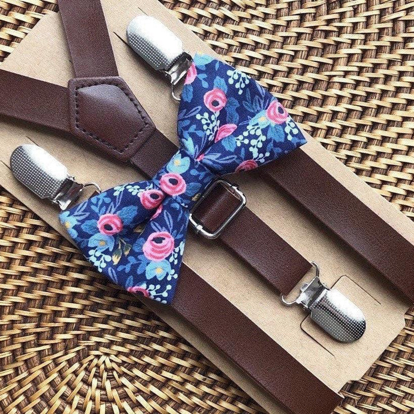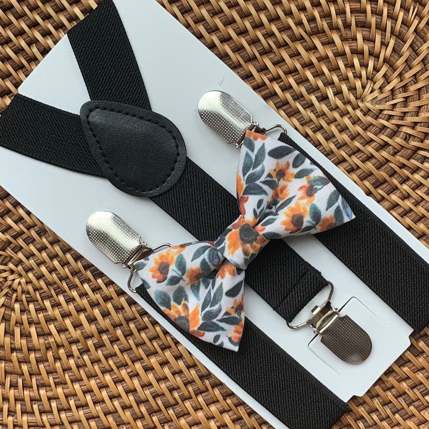Floral bow ties and suspenders for your next event- Each bow tie and suspender set is PERFECT for groomsmen gifts, groomsmen, rustic wedding, wedding accessories, bowtie, beach wedding, fall wedding, boho wedding, wedding party gifts, backyard wedding, ring bearer outfit, women's suspenders, leather suspenders, birthday celebration or any other special occasion!