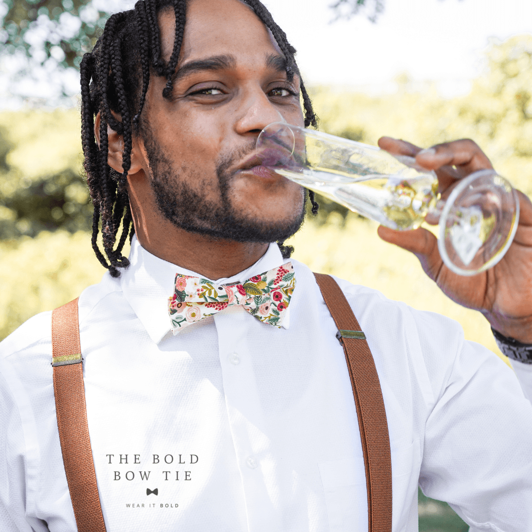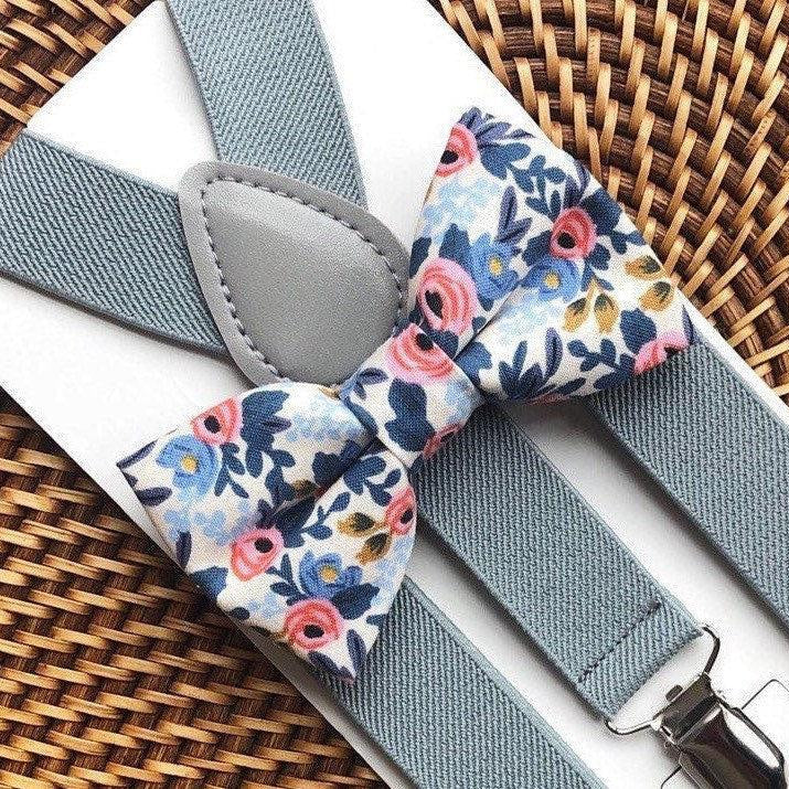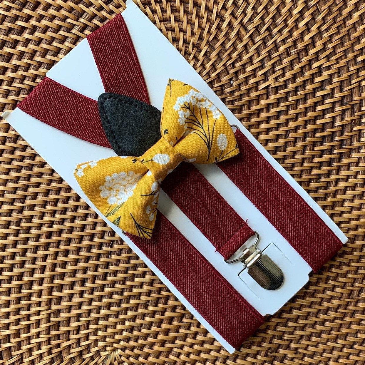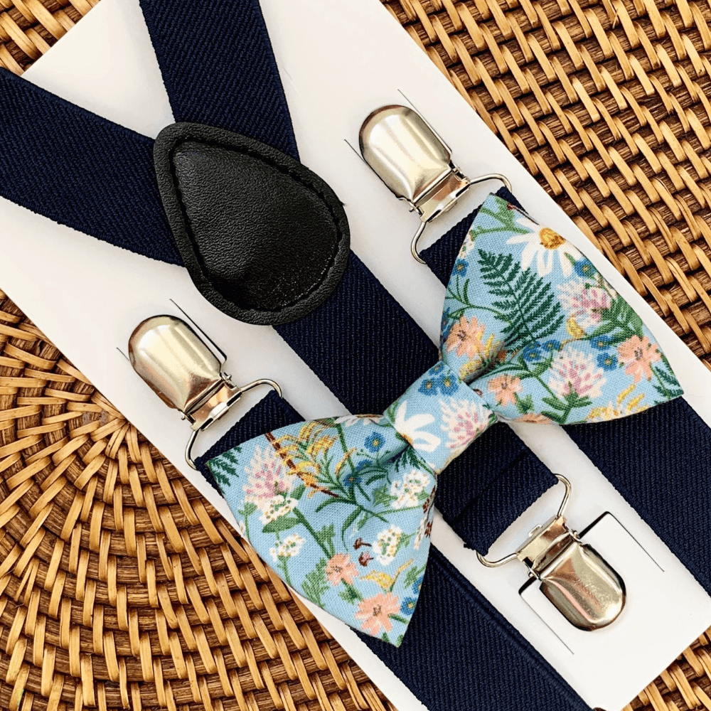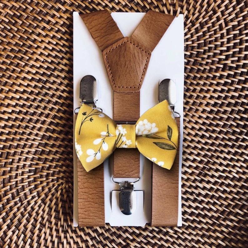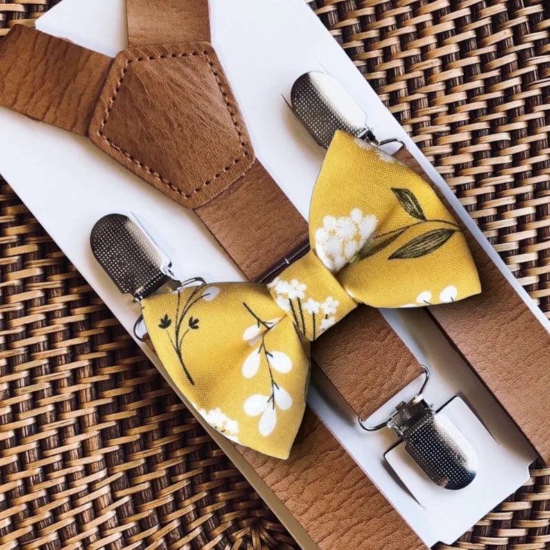 Floral bow ties and suspenders for your next event- Each bow tie and suspender set is PERFECT for groomsmen gifts, groomsmen, rustic wedding, wedding accessories, bowtie, beach wedding, fall wedding, boho wedding, wedding party gifts, backyard wedding, ring bearer outfit, women's suspenders, leather suspenders, birthday celebration or any other special occasion!