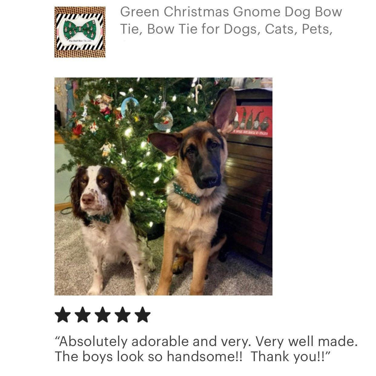 Shop the best Christmas dog bow ties and holiday pet accessories designed for Christmas family photos, Santa visits, holiday cards, winter weddings, and festive celebrations. Our premium pre-tied Christmas dog bow ties are perfect for small dogs, large dogs, puppies, and cats, with secure elastic loops that slide easily over any standard collar for a comfortable, stay-in-place fit. Choose from the most popular holiday styles including red plaid dog bow ties, green Christmas bow ties, buffalo plaid dog bow ties, reindeer dog bow ties, gnome dog bow ties, snowflake dog bow ties, Santa bow ties, and classic Christmas tartan pet bow ties. Give your pet the cutest holiday look with handmade Christmas pet bow ties that are durable, photo-ready, and made for festive fun.