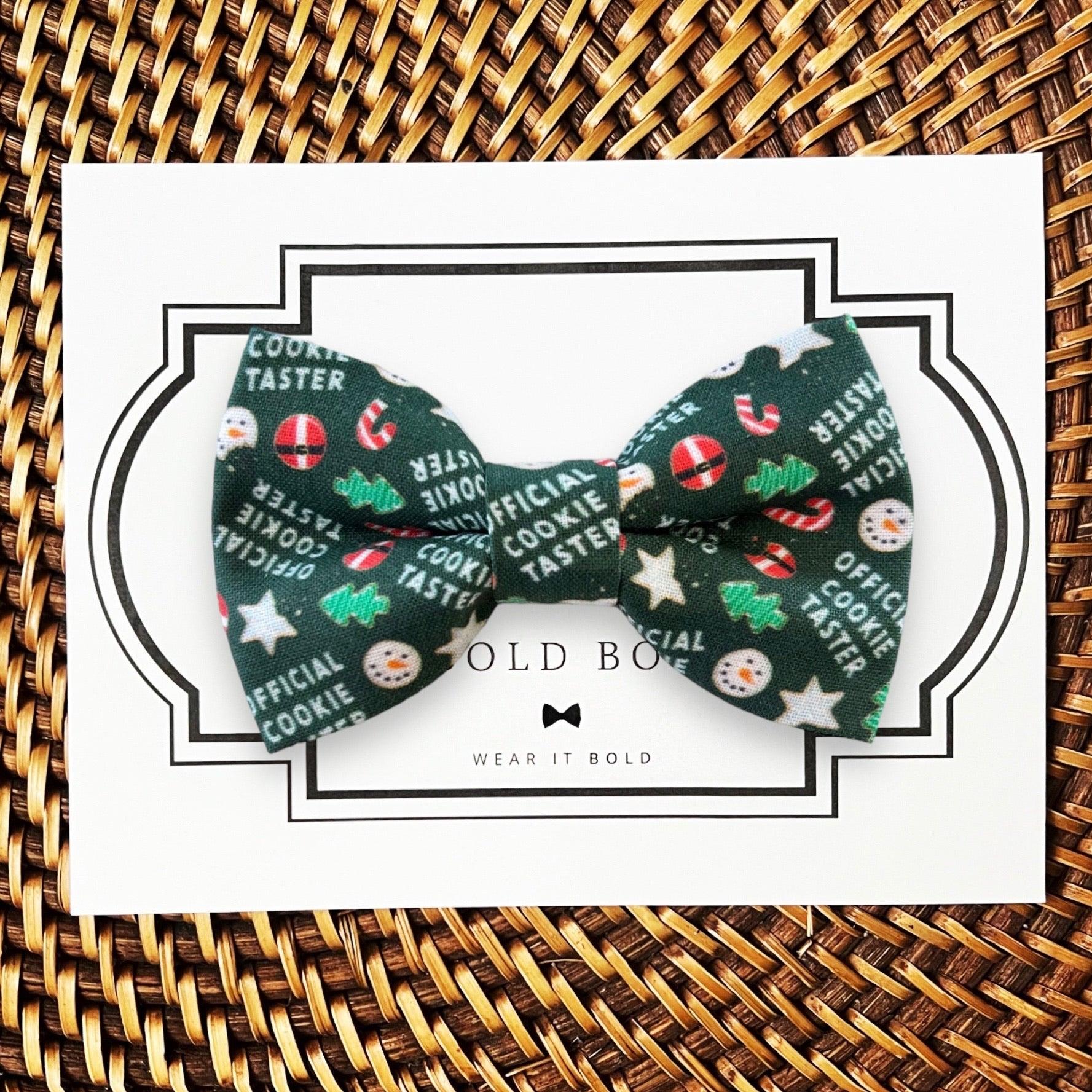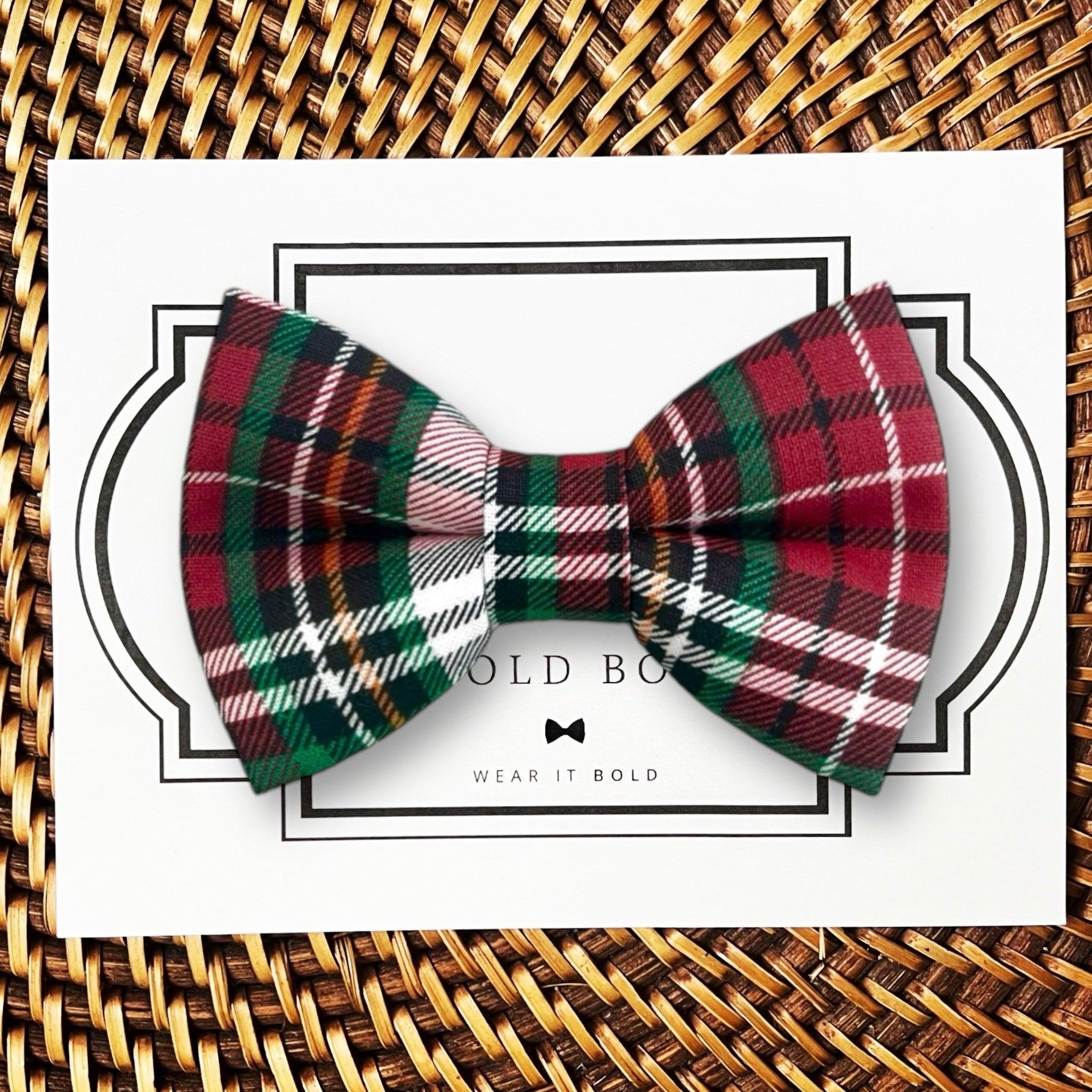 Shop the best Christmas dog bow ties and holiday pet accessories designed for Christmas family photos, Santa visits, holiday cards, winter weddings, and festive celebrations. Our premium pre-tied Christmas dog bow ties are perfect for small dogs, large dogs, puppies, and cats, with secure elastic loops that slide easily over any standard collar for a comfortable, stay-in-place fit. Choose from the most popular holiday styles including red plaid dog bow ties, green Christmas bow ties, buffalo plaid dog bow ties, reindeer dog bow ties, gnome dog bow ties, snowflake dog bow ties, Santa bow ties, and classic Christmas tartan pet bow ties. Give your pet the cutest holiday look with handmade Christmas pet bow ties that are durable, photo-ready, and made for festive fun.