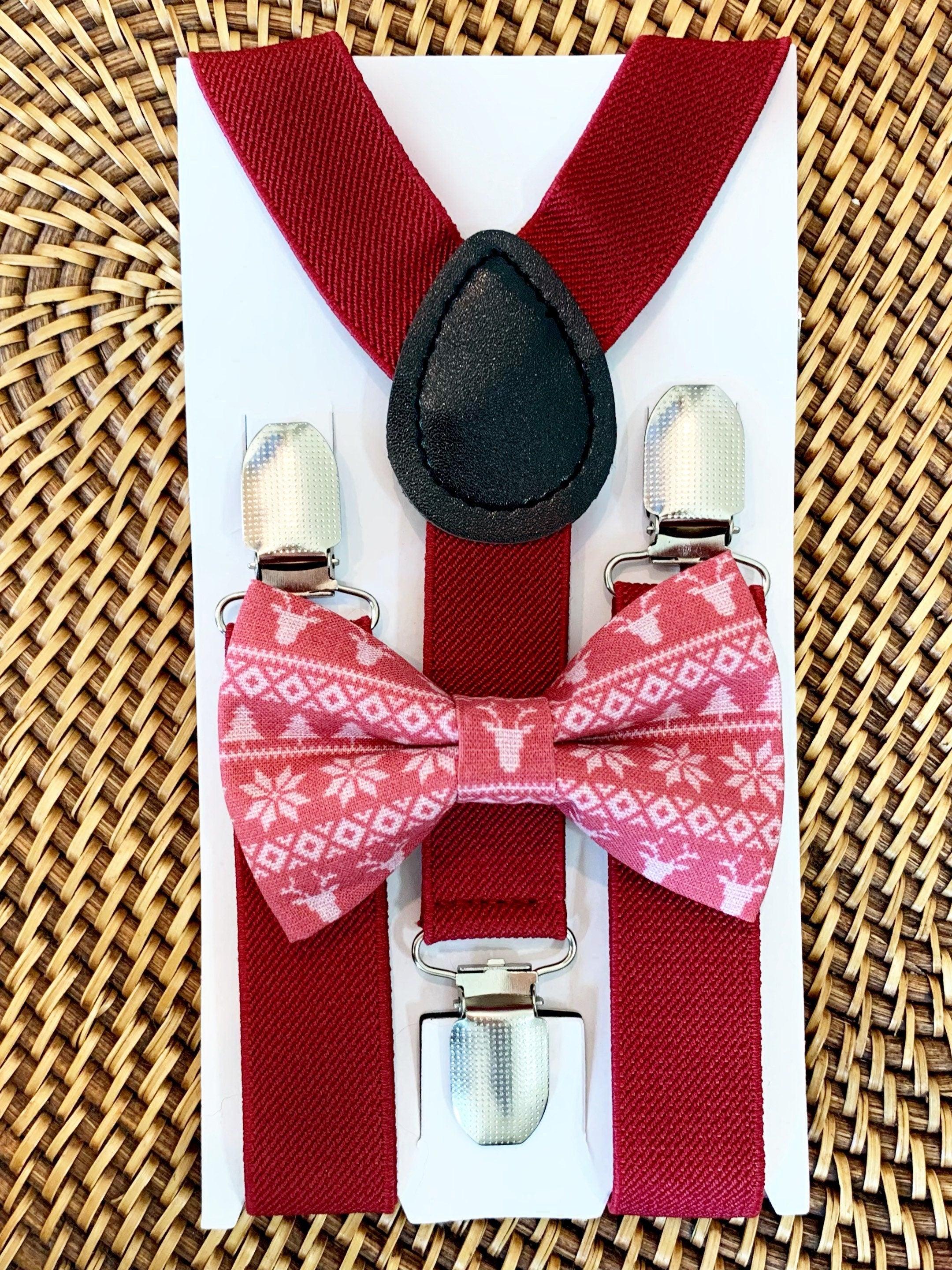 Christmas Sweater Bow Tie & Burgundy Suspenders Set- Perfect for Christmas photos, Thanksgiving celebrations, or a winter wedding!