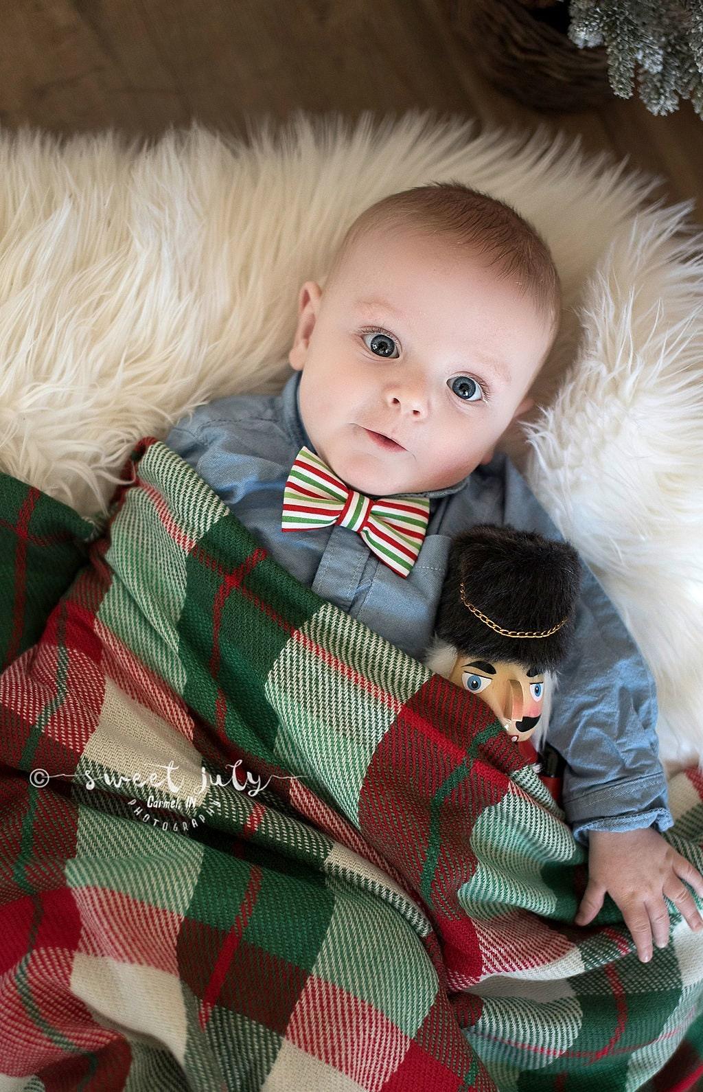 Red, Green & White Striped Bow Tie & Red Suspenders Set - Perfect for a Christmas Outfit or Holiday Photo Shoot!