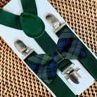 Plaid Green Tartan Plaid Bow tie & Green Suspenders are a great choice for family photos, Christmas photos, 1st Christmas, Thanksgiving, groomsmen, wedding, rustic wedding, boho wedding, ring bearer outfit, birthday celebration or any other special occasion!