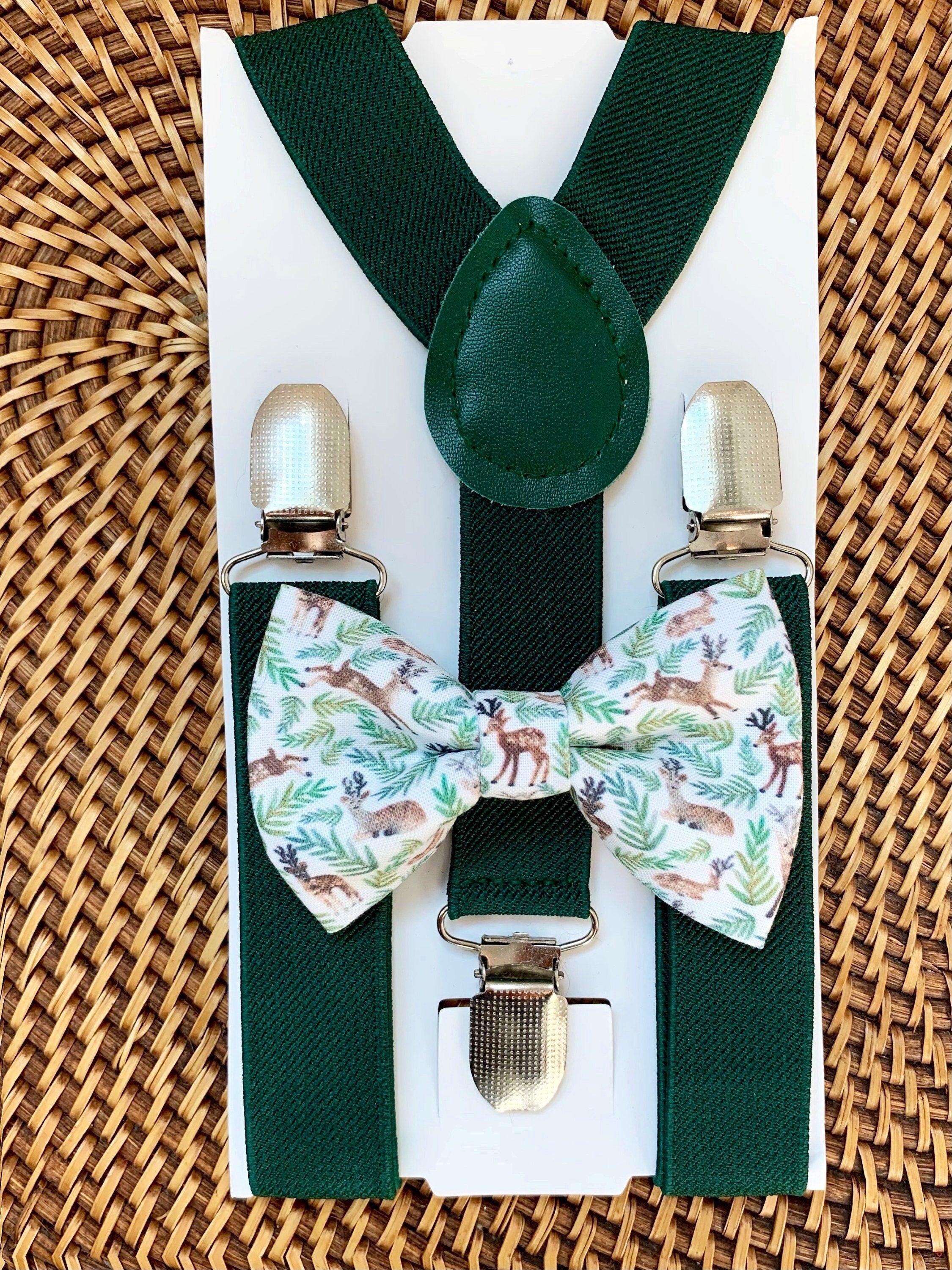 Whimsical Reindeer Bow Tie & Juniper Suspenders Set