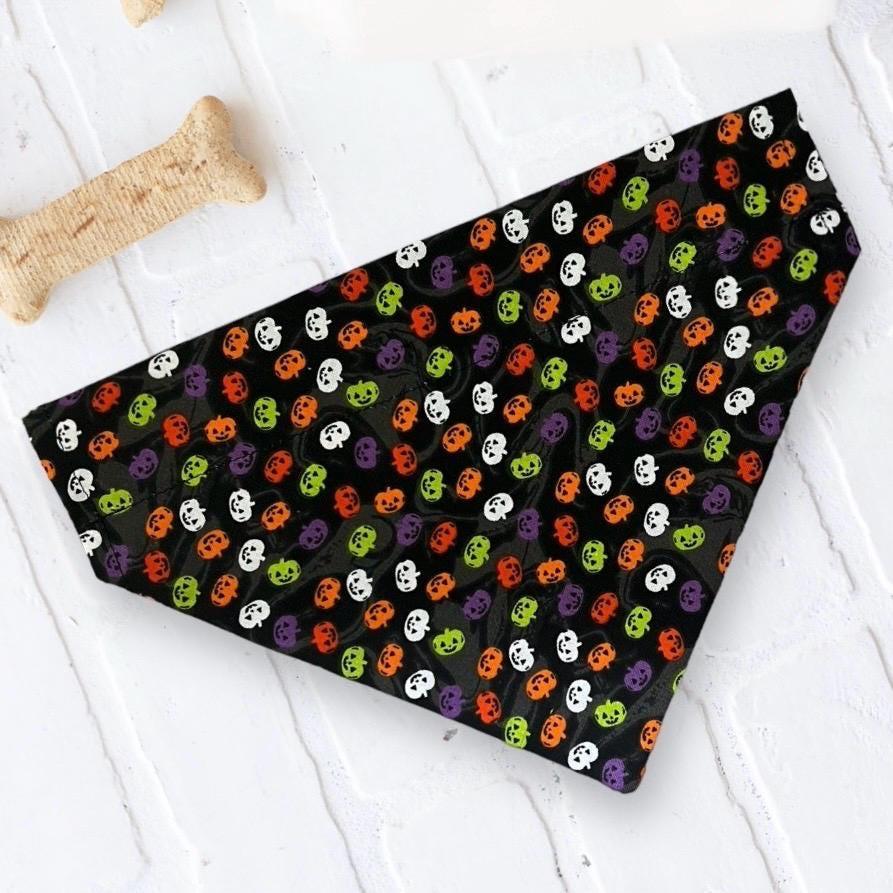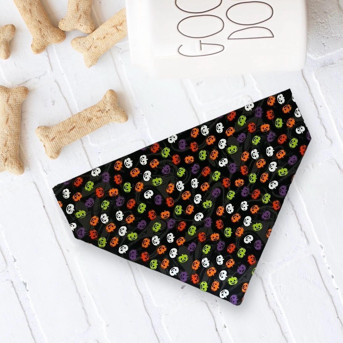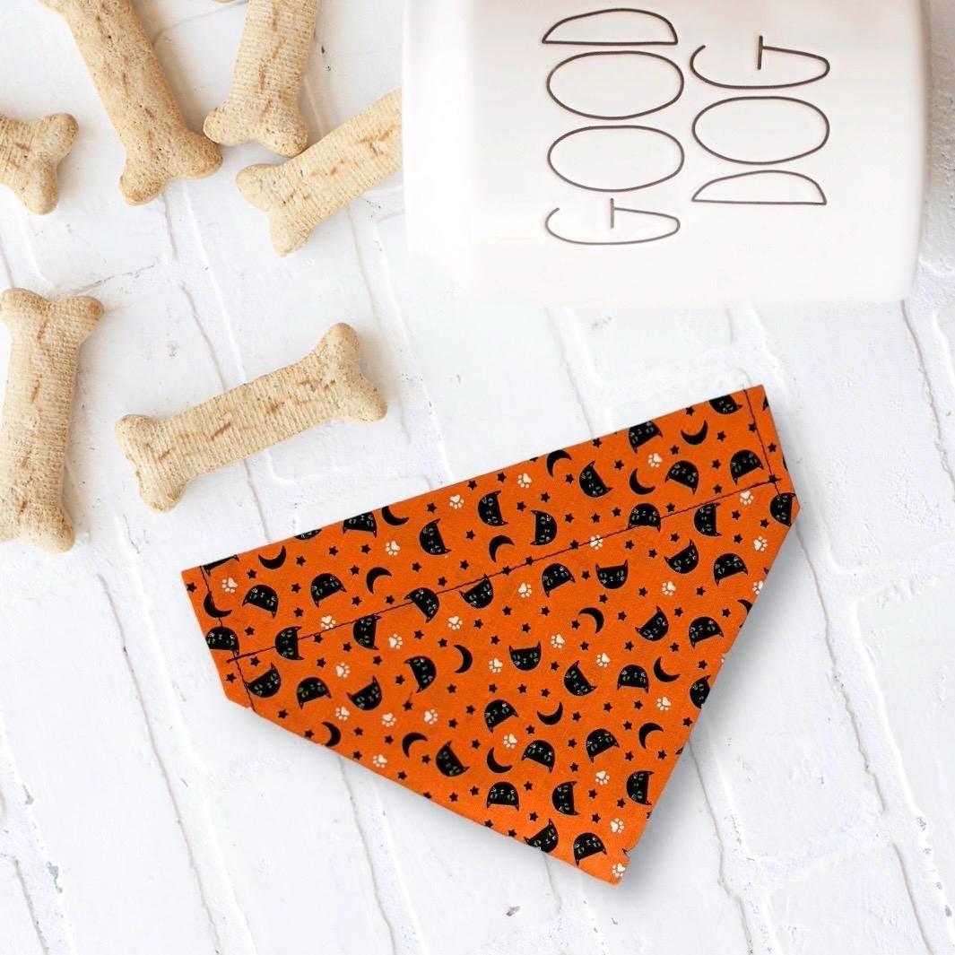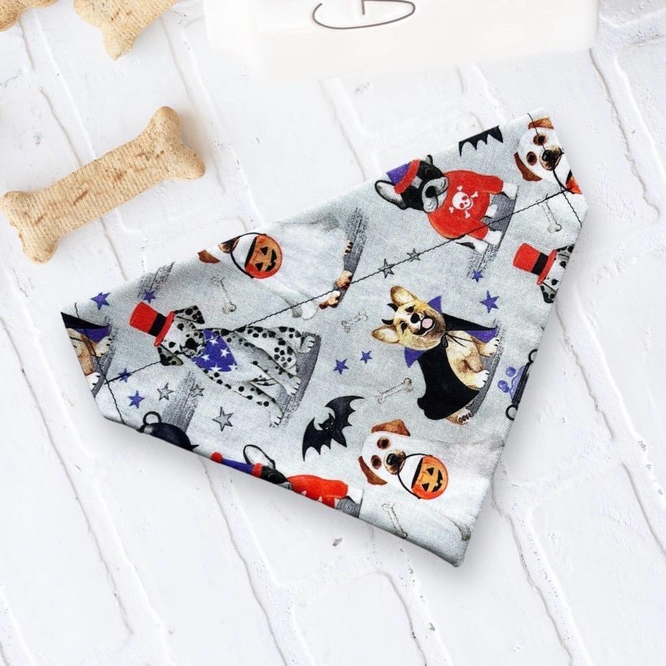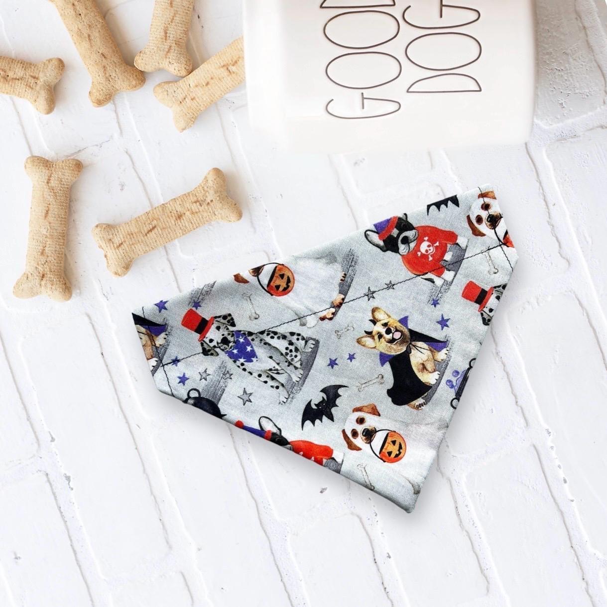 Shop the best Halloween dog bandanas for spooky, cute, and festive pet style! Our handmade Halloween dog bandanasare the ultimate dog accessories for Halloween costumes, trick-or-treating, fall pet photos, and festive dog outfits. Featuring fun prints like pumpkins, ghosts, bats, witches, candy corn, and black cats, each dog bandana for Halloween is designed to slip easily onto your pet’s collar for a secure and comfortable fit.