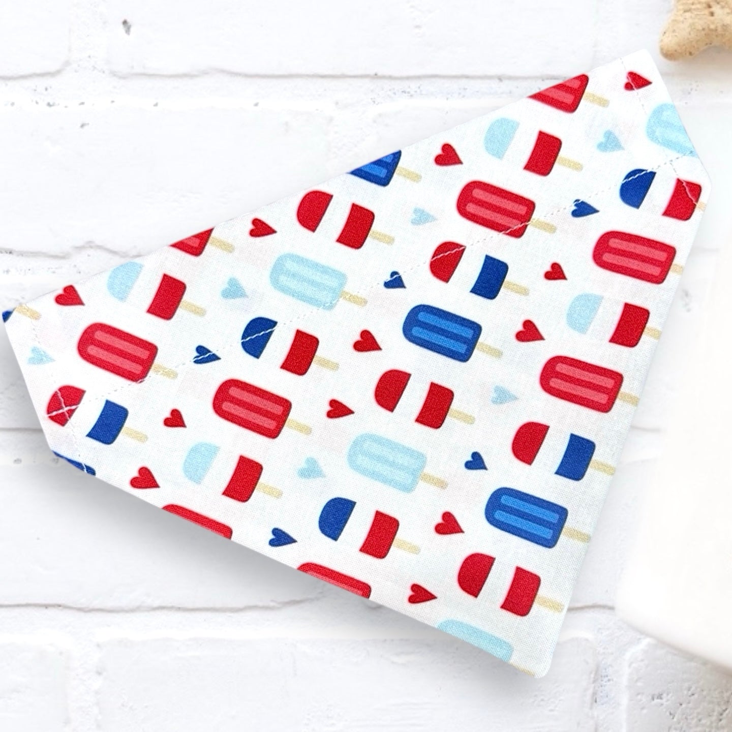 Each summer dog bandana is made with love, slips on to a dog collar or cat collar, and ready to add to your cat or dog accessories collection. PERFECT for Fourth of July, our bandanas are two-ply, cotton and lightweight. This is the perfect dog gift for a dog mom, dog dad, or any dog lover! Proudly handmade in the USA by a woman-owned, multigenerational family-run brand.
