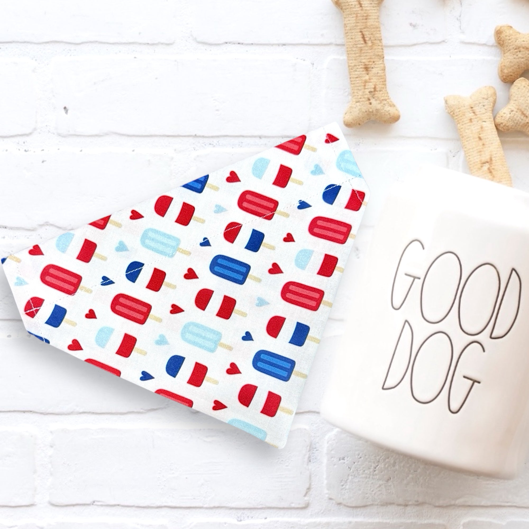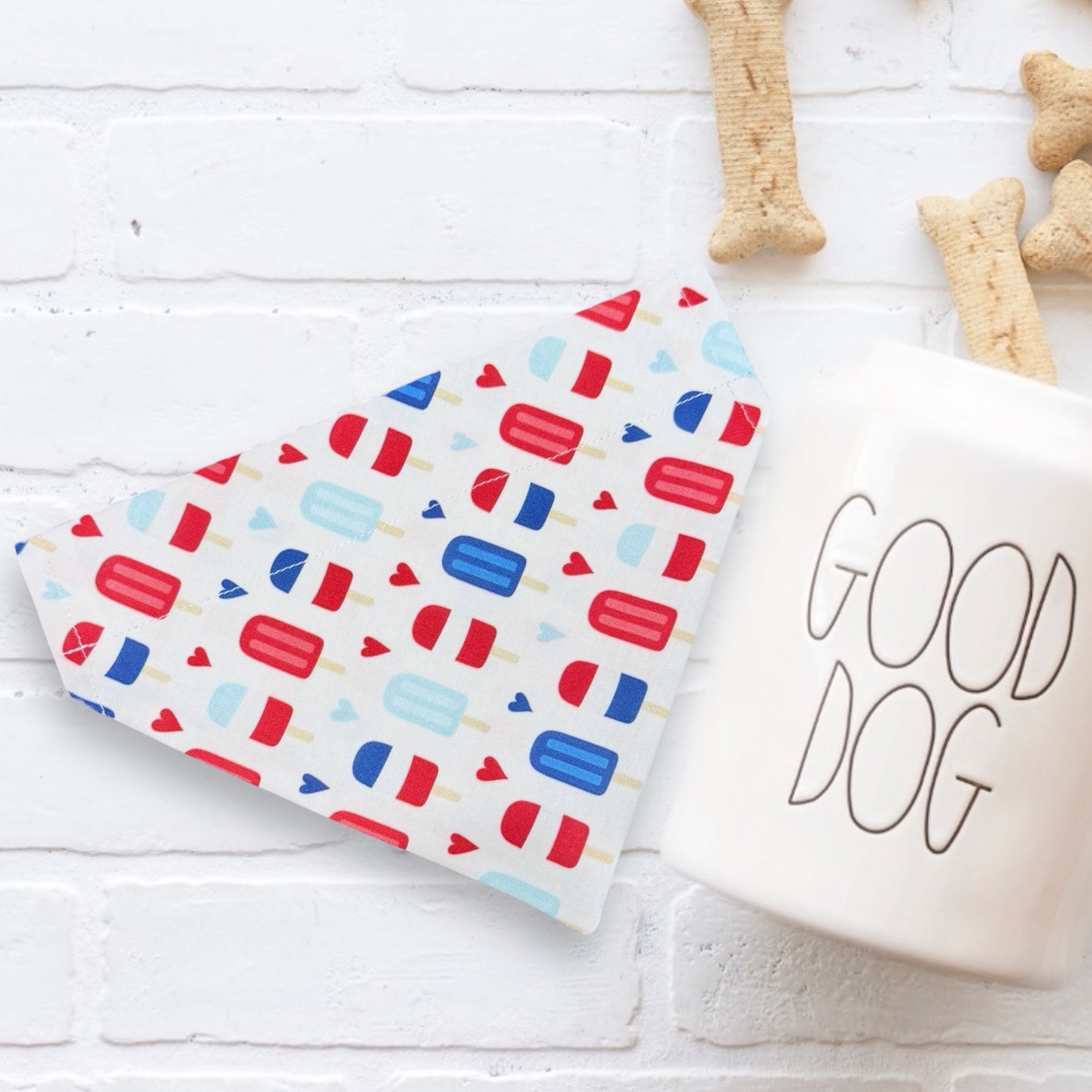 Each summer dog bandana is made with love, slips on to a dog collar or cat collar, and ready to add to your cat or dog accessories collection. PERFECT for Fourth of July, our bandanas are two-ply, cotton and lightweight. This is the perfect dog gift for a dog mom, dog dad, or any dog lover!