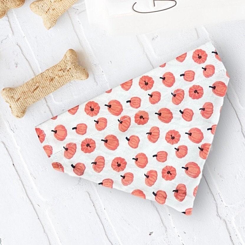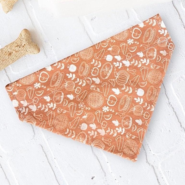 Shop the best Thanksgiving dog bandanas for fall family photos, Thanksgiving dinner, autumn walks, and pumpkin patch outings. Our fall dog bandanas feature premium seasonal styles including pumpkin dog bandanas, turkey dog bandanas, plaid Thanksgiving bandanas, boho fall prints, harvest leaves, and rustic farmhouse styles. Each Thanksgiving pet bandana slides onto your dog’s collar for a secure, comfortable fit—perfect for small dogs, large dogs, and cats.