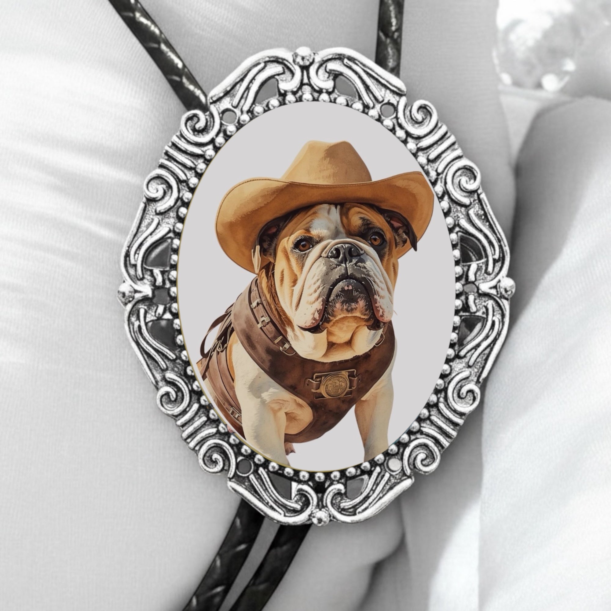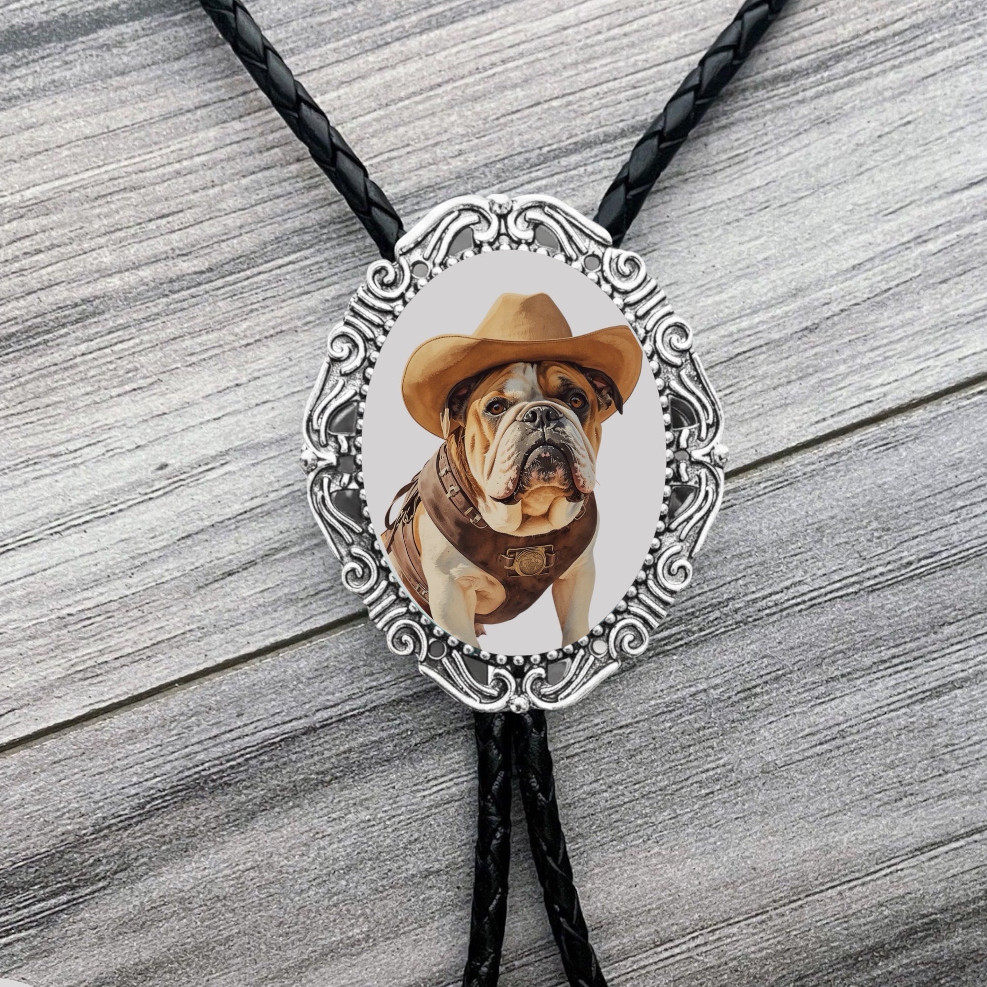Make a powerful style statement with this Bulldog Cowboy Bolo Tie, a standout Western accessory that blends rugged cowboy tradition with the bold, unmistakable attitude of the bulldog. Designed for those who appreciate Western jewelry, cowboy fashion, and unique statement accessories, this bolo tie delivers timeless Americana style with a modern edge.