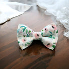 This floral bow tie is handmade and pre-tied on a comfortable adjustable strap.It is a beautiful addition to a wedding bowtie, groomsmen accessories, men’s bow ties or ring bearer outfit!