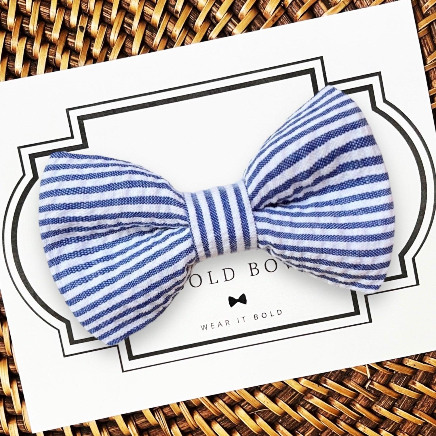 Navy Blue Seersucker Bow Tie - This bow tie slips easily on to a dog collar or cat collar to celebrate Easter, pet birthday or for a great pet gift!