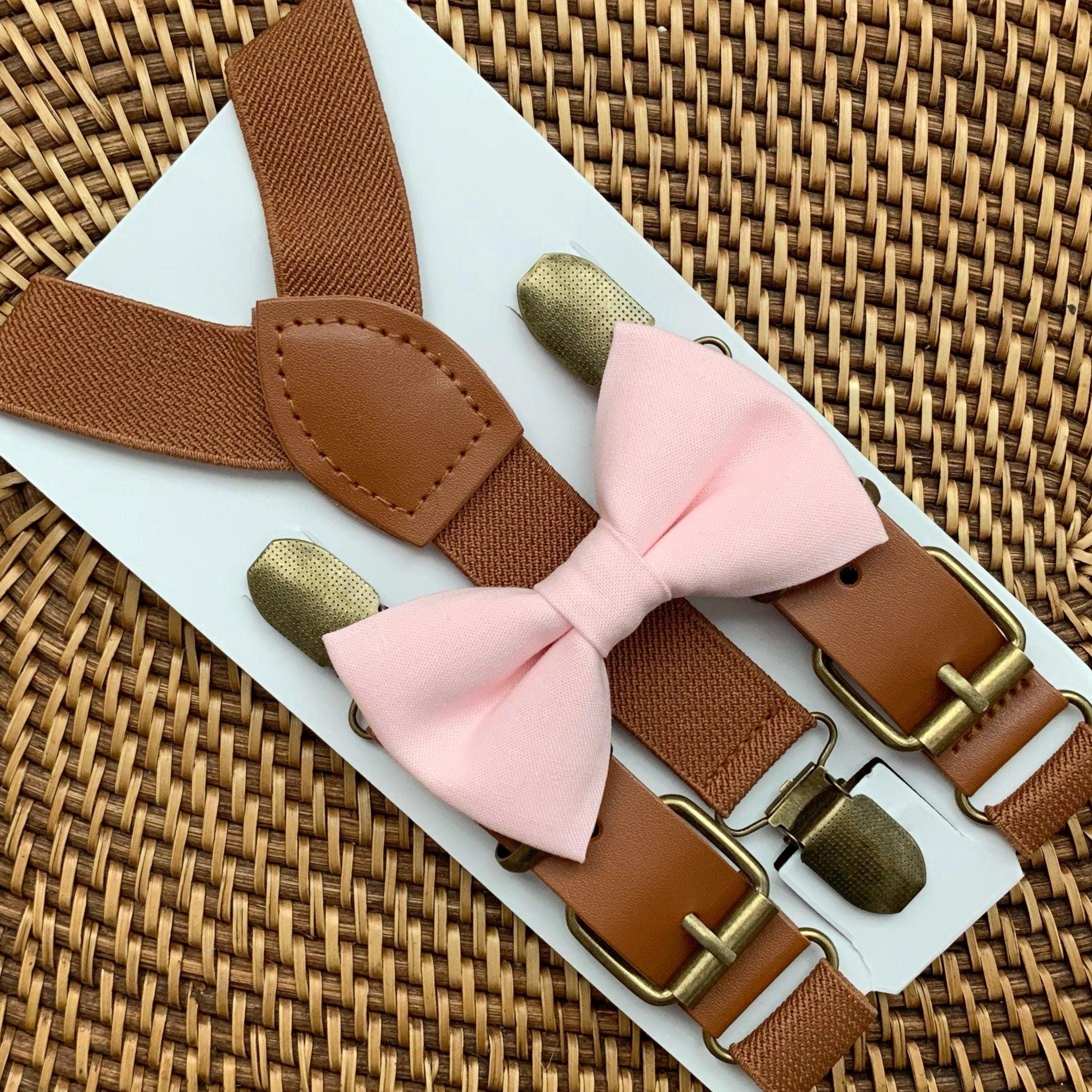 Blush Bow Tie & Brown Suspenders **A favorite pick for groomsmen and ring bearers!💕