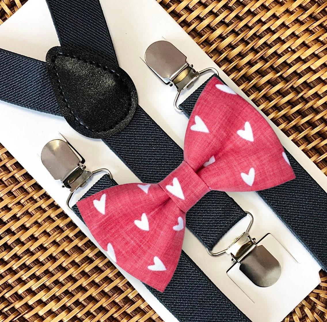 Our heart bow tie & dark grey suspenders are the PERFECT choice for toddler suspenders for toddler boy clothes, baby boy bow ties, Valentines party, baby boy gift or any other special occasion.