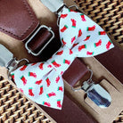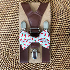 Christmas Stocking Bow Tie & Dark Brown Vegan Leather Suspenders Set