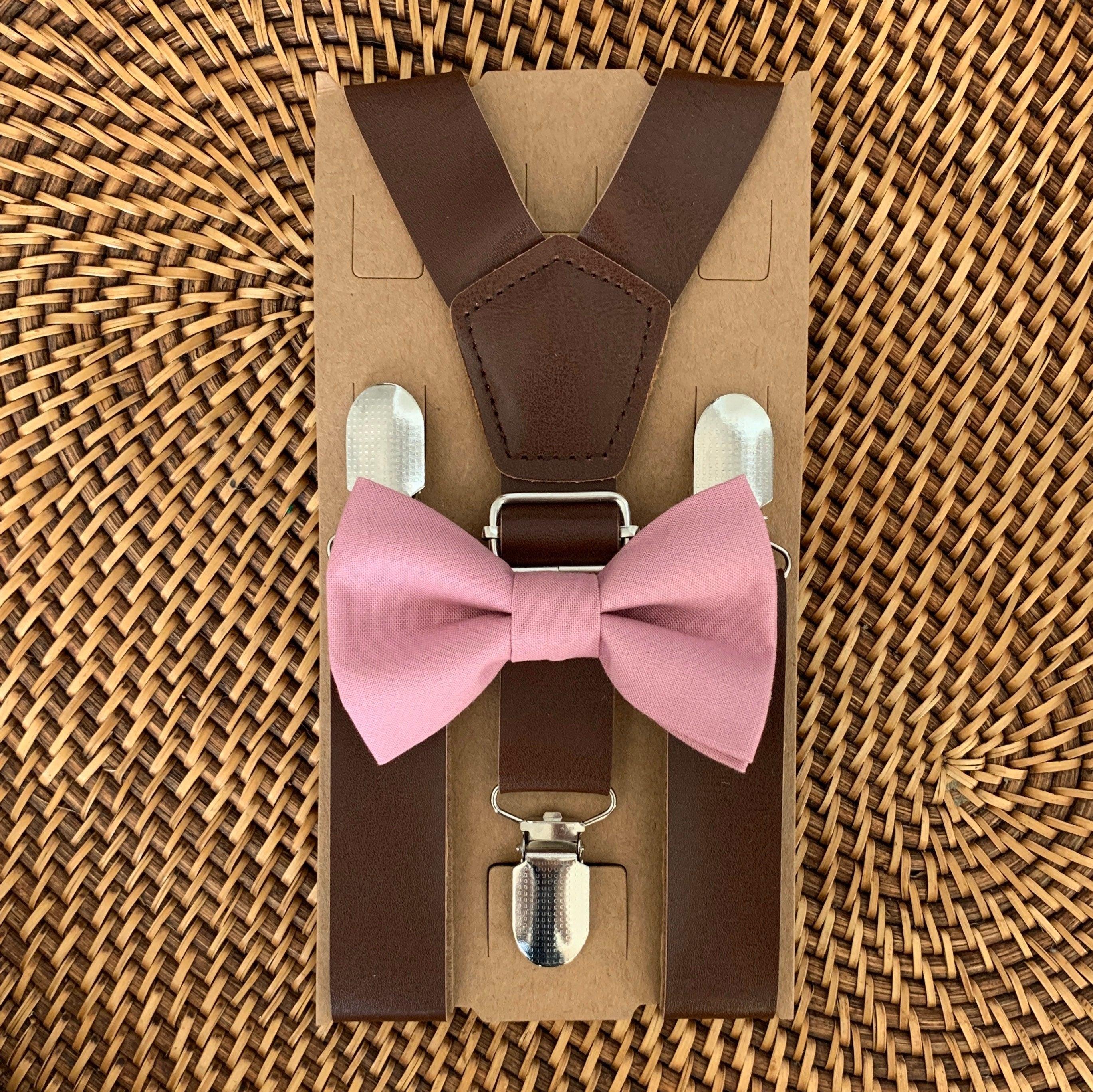 Show up to your next event in style wearing our stunning dusty rose bow tie and leather suspenders. These faux leather suspenders and bow tie are perfect for a wedding, ring bearer outfit, cake smash outfit, 1st birthday outfit, family photoshoot or other special occasion.