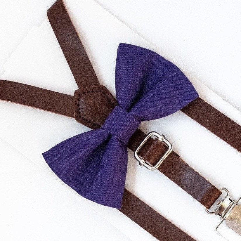 Your special guy will look so dashing when he shows up wearing this purple bow tie and faux leather suspenders set! Our purple bow tie is a great choice for family photos, wedding, ring bearer outfit, birthday celebration or any other special occasion.