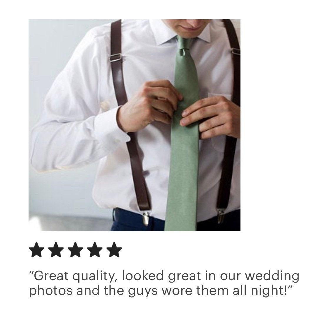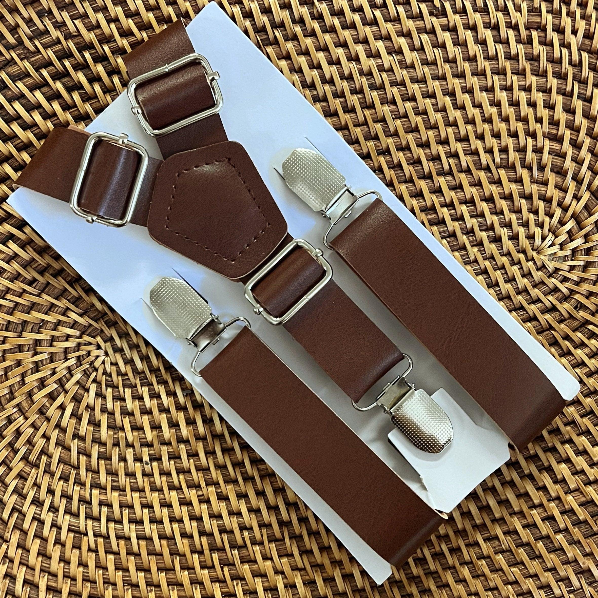 Vegan leather suspenders - Each set includes a premium set of suspenders. They are PERFECT for groomsmen attire, ring bearer outfits, mens suspenders, wedding, work suspenders, women's suspenders, suspenders for men, leather suspenders or any other special occasion! Handmade in the USA with care by a woman-owned, multigenerational family-run brand.