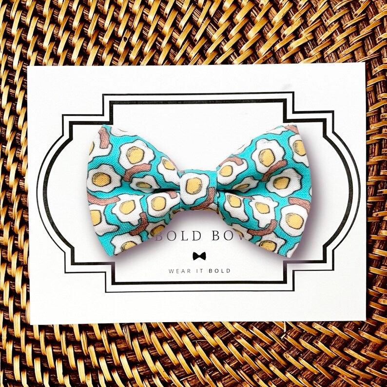 Bacon & Eggs Dog Bow Tie or Cat Bow Tie-- For Dogs/Cats/Pets. This bow tie slips easily on your dog's collar to help bring a little fun to the everyday!