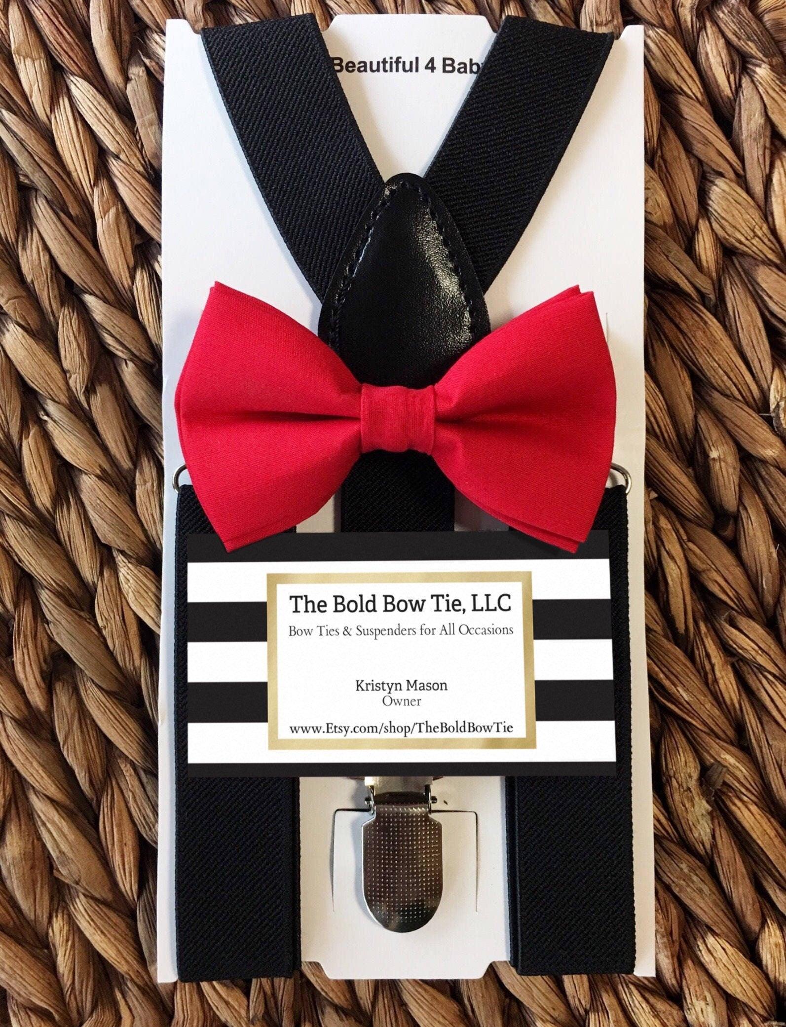 Red Bow Tie & Black Suspenders is a wonderful choice for family photos, weddings, groomsmen bowties, ring bearer outfit, birthday celebration or any other special occasion.