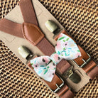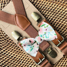 Pink Floral Bow Tie & Cognac Brown Suspenders