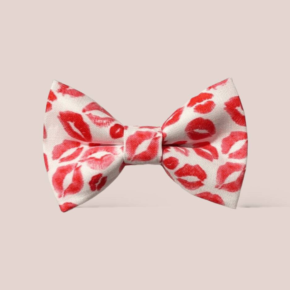 Lipstick Kisses Hair Bow- for Valentines Day! Our hair bows are the perfect accessory for all ages. All of our hair bows are handmade and available in matching prints for bow ties and pet bows to match loved ones.