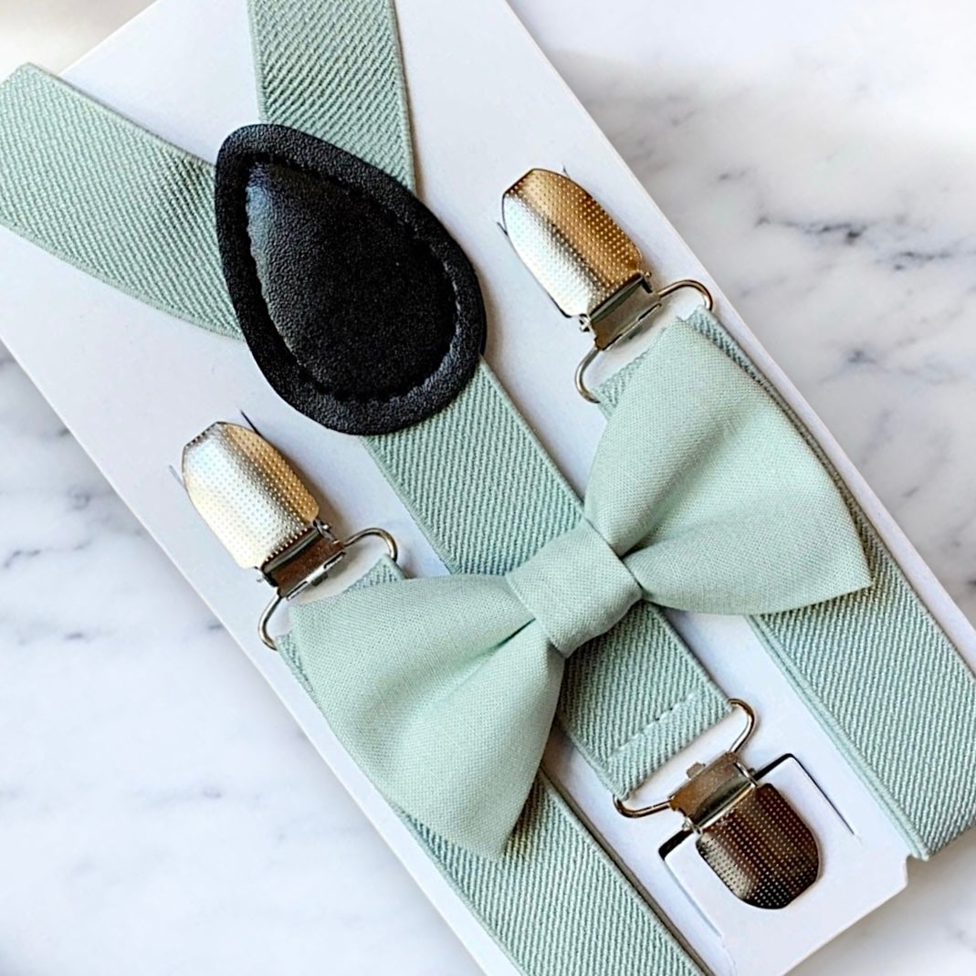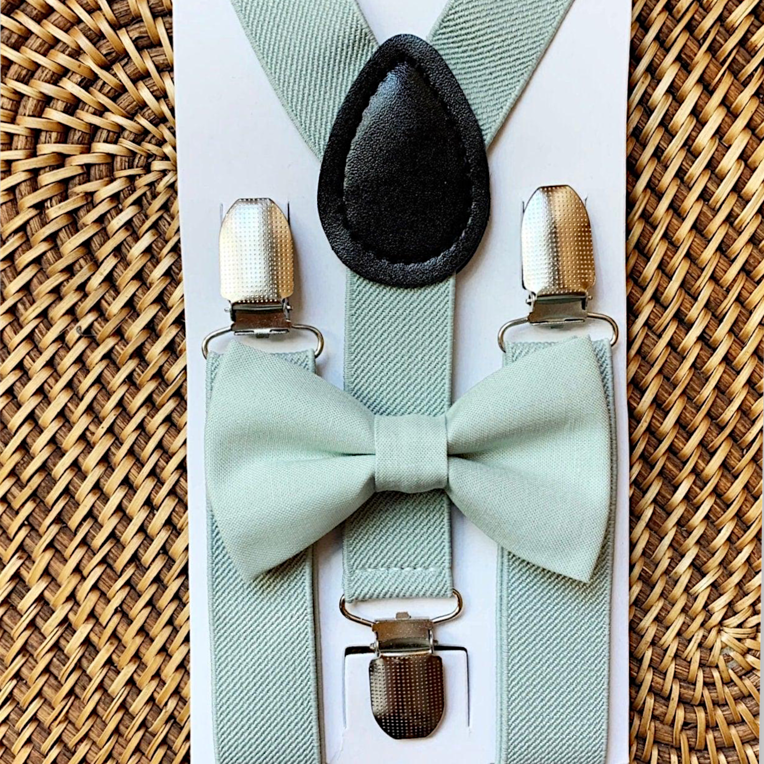 Your special guy will look so handsome when he shows up wearing this elegant sage green bow tie and suspenders! This set is a great choice for family photos, wedding, ring bearer outfit, birthday celebration or any other special occasion.